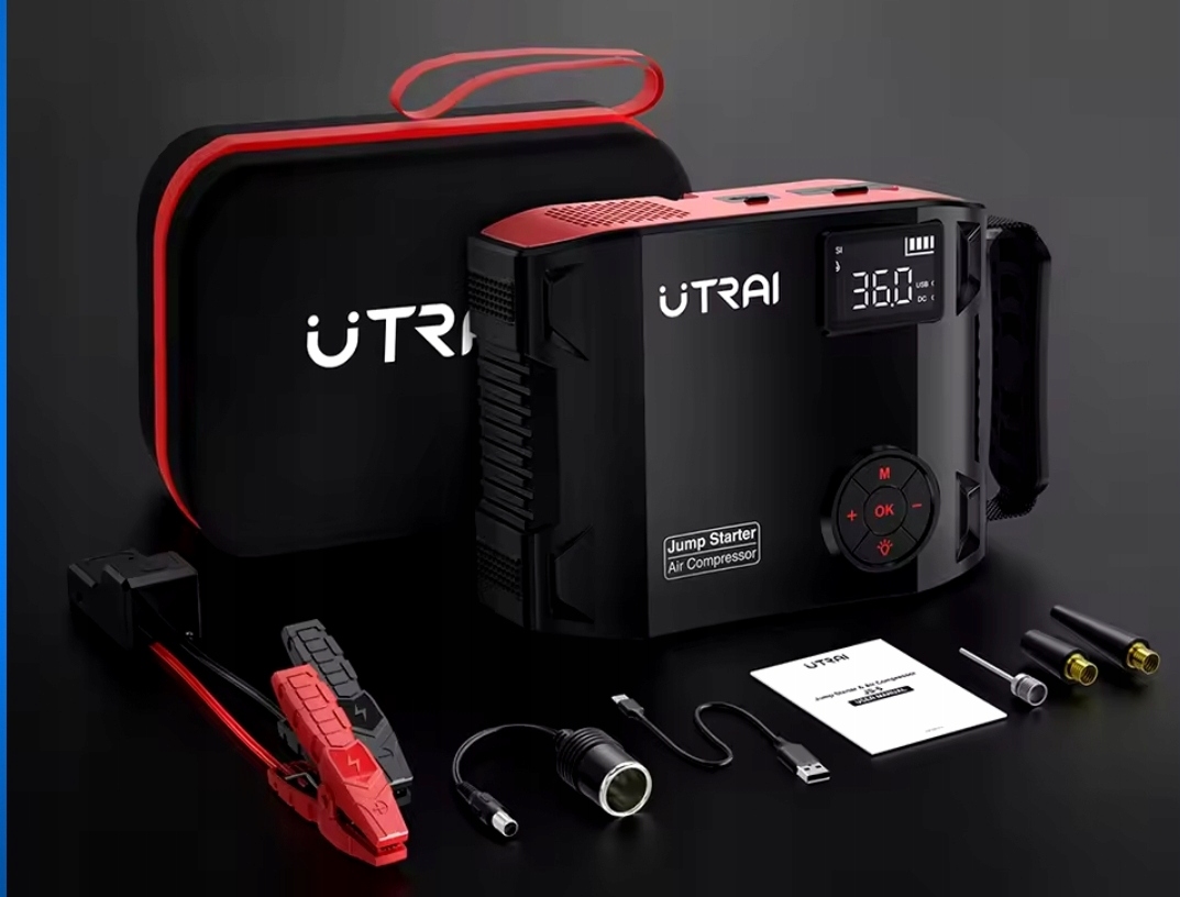 Utrai — портативное устройство Power Bank с функцией запуска от внешнего источника. И встроенный компрессор.