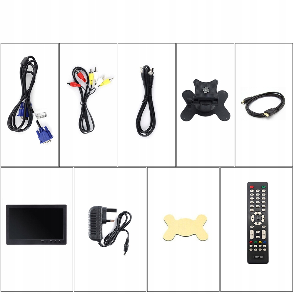 2. Поддерживает VGA/AV/HDMI/DVD/ПК/CCTV, совместим с записью, автомобильным монитором, экраном заднего вида автомобиля, а также для игр и дисплея компьютера. В комплект входят кабели VGA/AV/HDMI и аксессуары.
