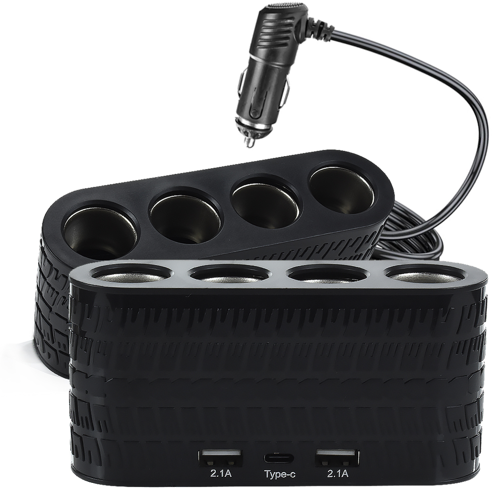 🚗 Разветвитель прикуривателя WEBSKI® Quad с двумя портами USB 2.1A + 1xUSB-C