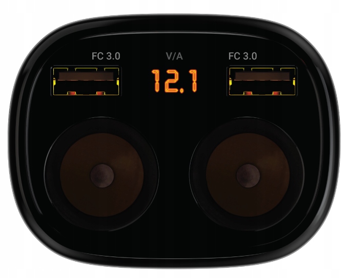 Разветвитель автомобильного прикуривателя с функцией зарядного устройства с индикацией бортового напряжения и потребляемого тока.