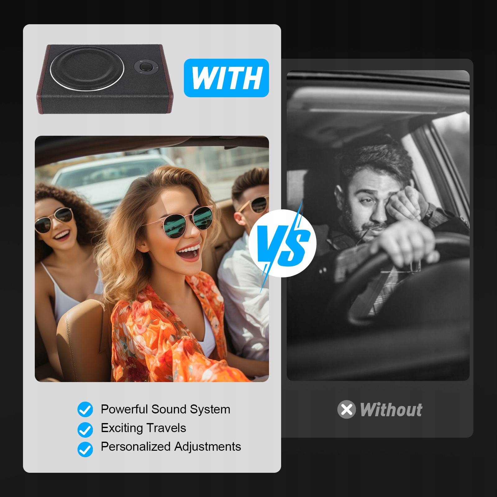 Слуховой праздник: оцененный 200 Вт, и до 600 Вт, мощная выходная мощность приносит вам глубокий и громкий бас! Частота отклика Ultrahizerok (40-200 Гц) и укрепление басов (0-12 дБ) в сочетании с соотношением сигнала к шуму ≥ 90 дБ и полным гармоническим искажением <0,4%, чтобы ваша музыка казалась реалистичной, как наслаждаясь слуховым закором на концерте!