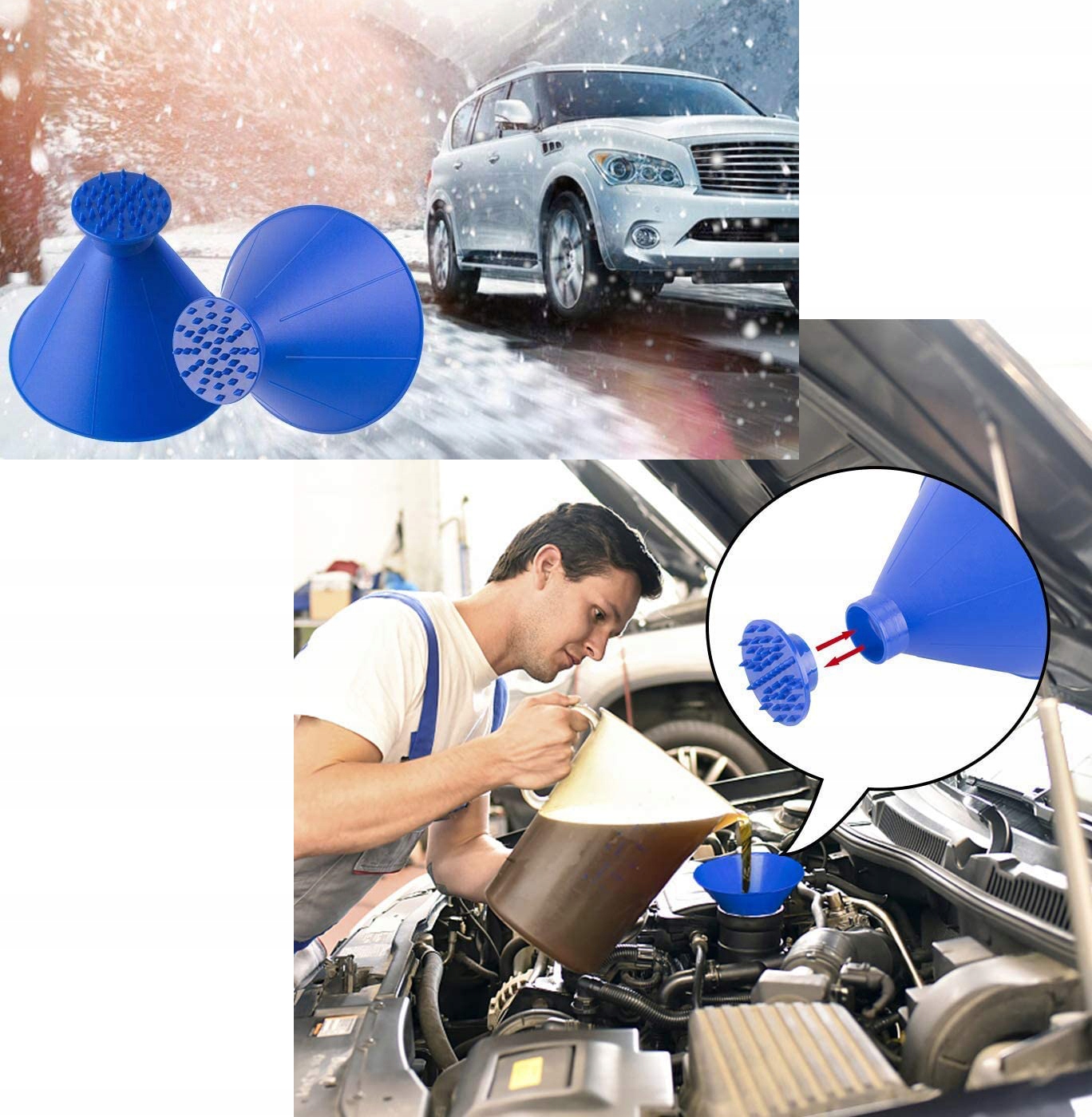 Используя отверстие, мы можем налить антиобледенитель окон и легко удалить лед с окон. С нашим скребком для льда вы удалите лед с окон гораздо быстрее, чем с помощью традиционного скребка. Дополнительно мы можем использовать его как воронку, например, для заливки жидкости омывателя лобового стекла и т. д.