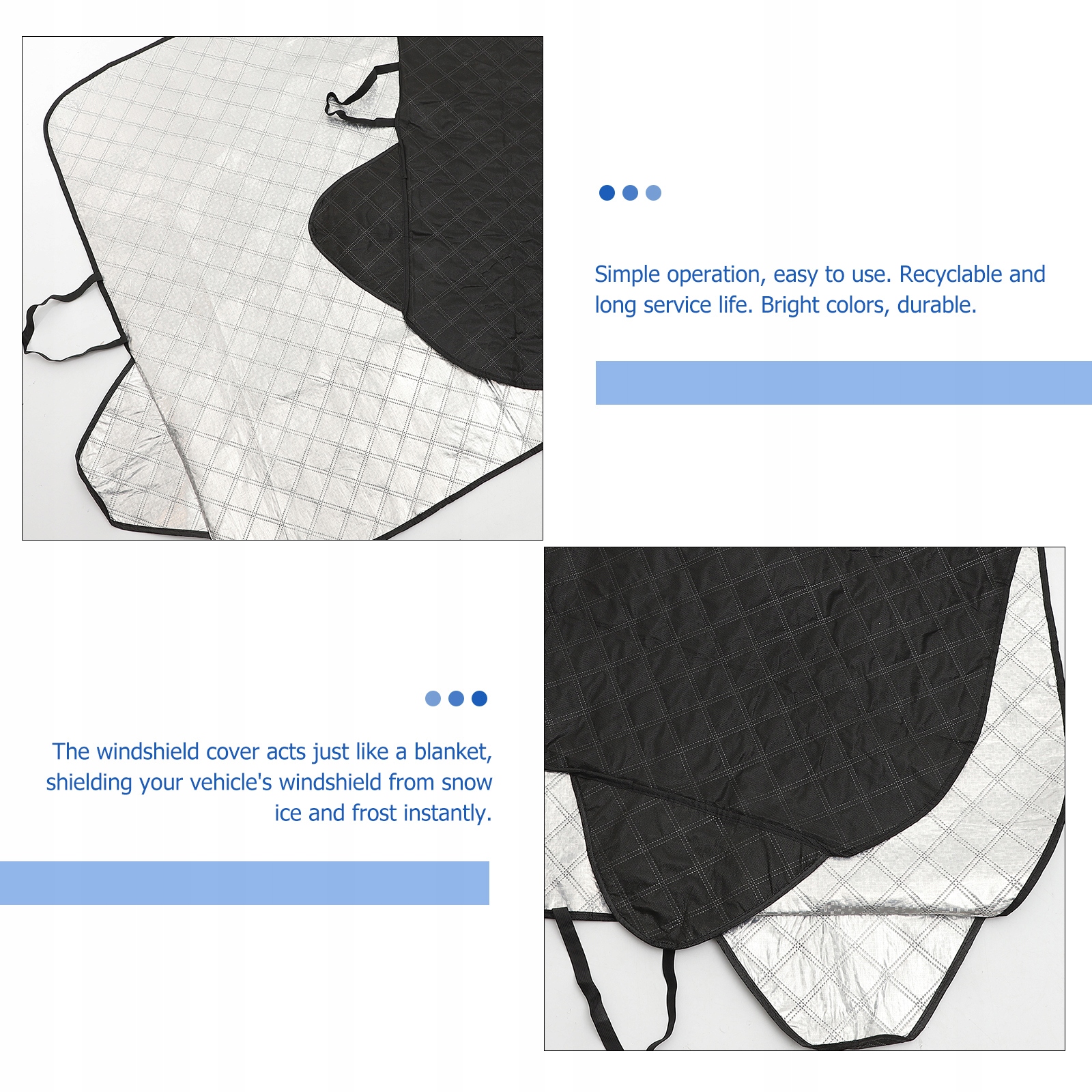 ✅Это чехол для лобового стекла, изготовленный из алюминиевой фольги, полиэтилена, хлопка и ткани. Он имеет разумный дизайн и практичные функции. Он защитит ваше лобовое стекло от дождя, снега и солнца. Он имеет более мягкую текстуру, безопасен для лобового стекла и не царапается. Это будет ваш хороший выбор. Это хороший защитный чехол, который подарит вам приятные впечатления.