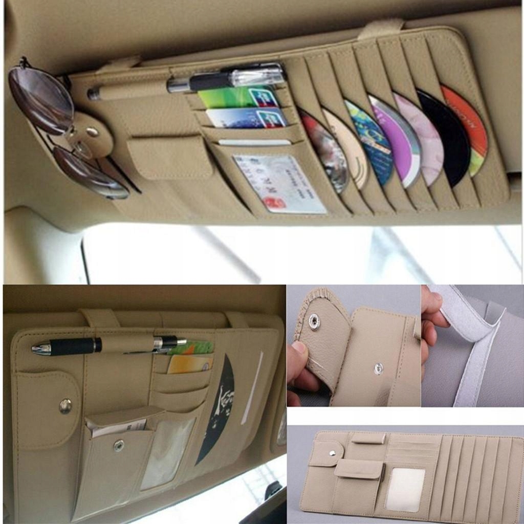 Многофункциональный автомобильный держатель для карт CD DVD, 7 предметов, органайзер для солнцезащитного козырька, бежевый