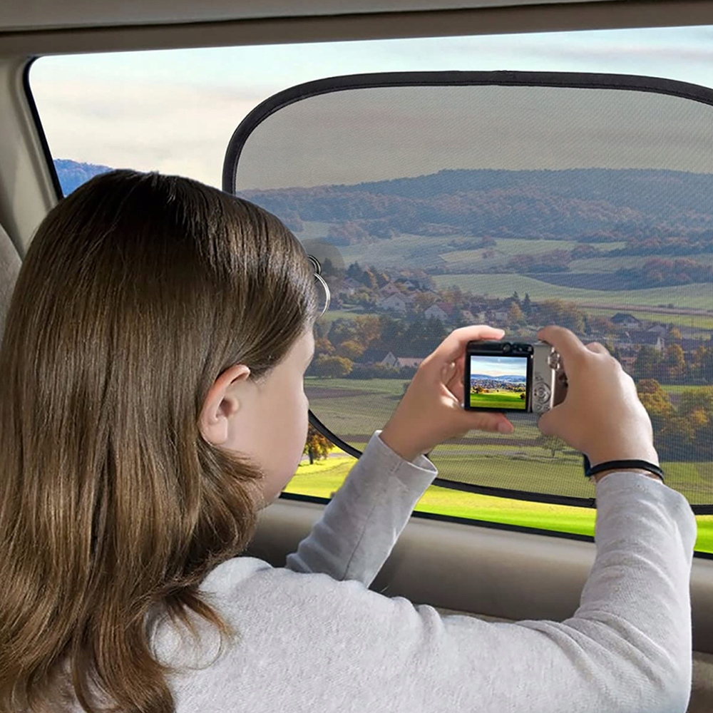 Автомобильные шторы изготовлены из специально разработанной сетчатой ткани, изготовленной из плотно сплетенной нейлоновой ткани, с использованием специальной технологии защиты от ультрафиолета, которая блокирует вредные ультрафиолетовые лучи, защищая вашего ребенка и пассажиров от раздражение кожи и сильный солнечный свет.
