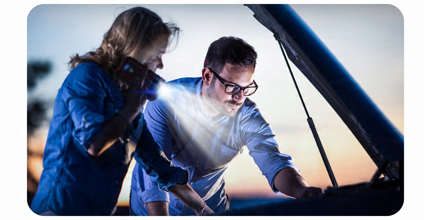 Забудьте о поиске дополнительного света в труднодоступных местах. Наше устройство оснащено встроенным светодиодным освещением, которое облегчает работу. Выберите один из четырех режимов: обычный, стробоскоп, SOS или предупреждение, чтобы настроить свет в соответствии с вашими потребностями. Просто удерживайте кнопку питания в течение 3 секунд и нажмите еще раз, чтобы изменить режим.