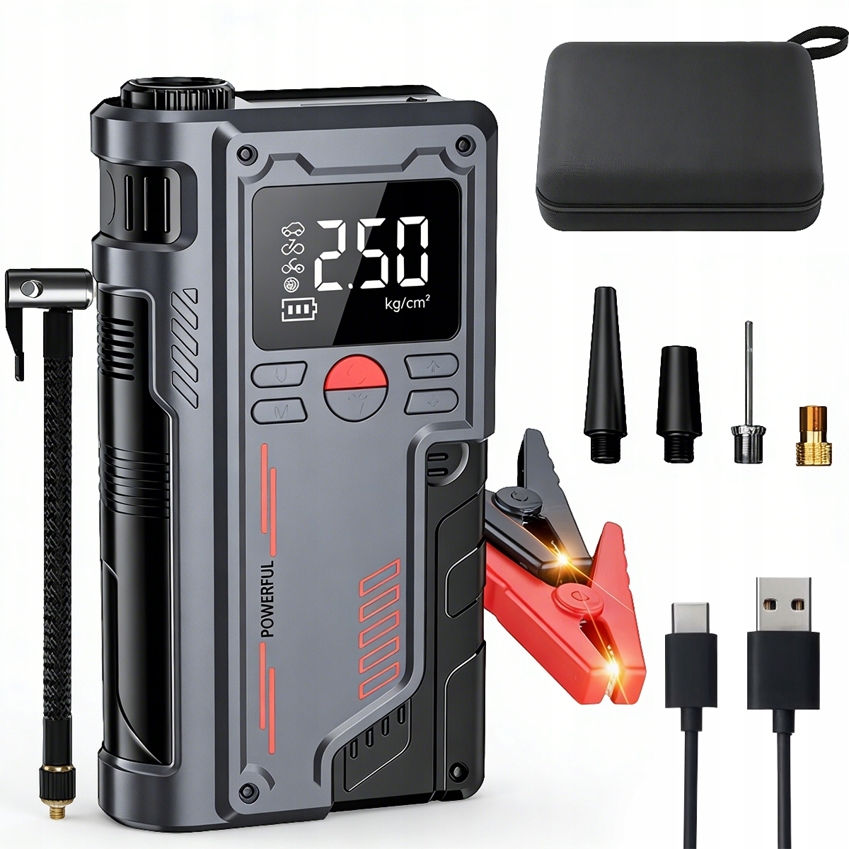 ❇️Портативный аварийный стартер 12В 20000мАч, 2 в 1 для накачивания автомобильных шин