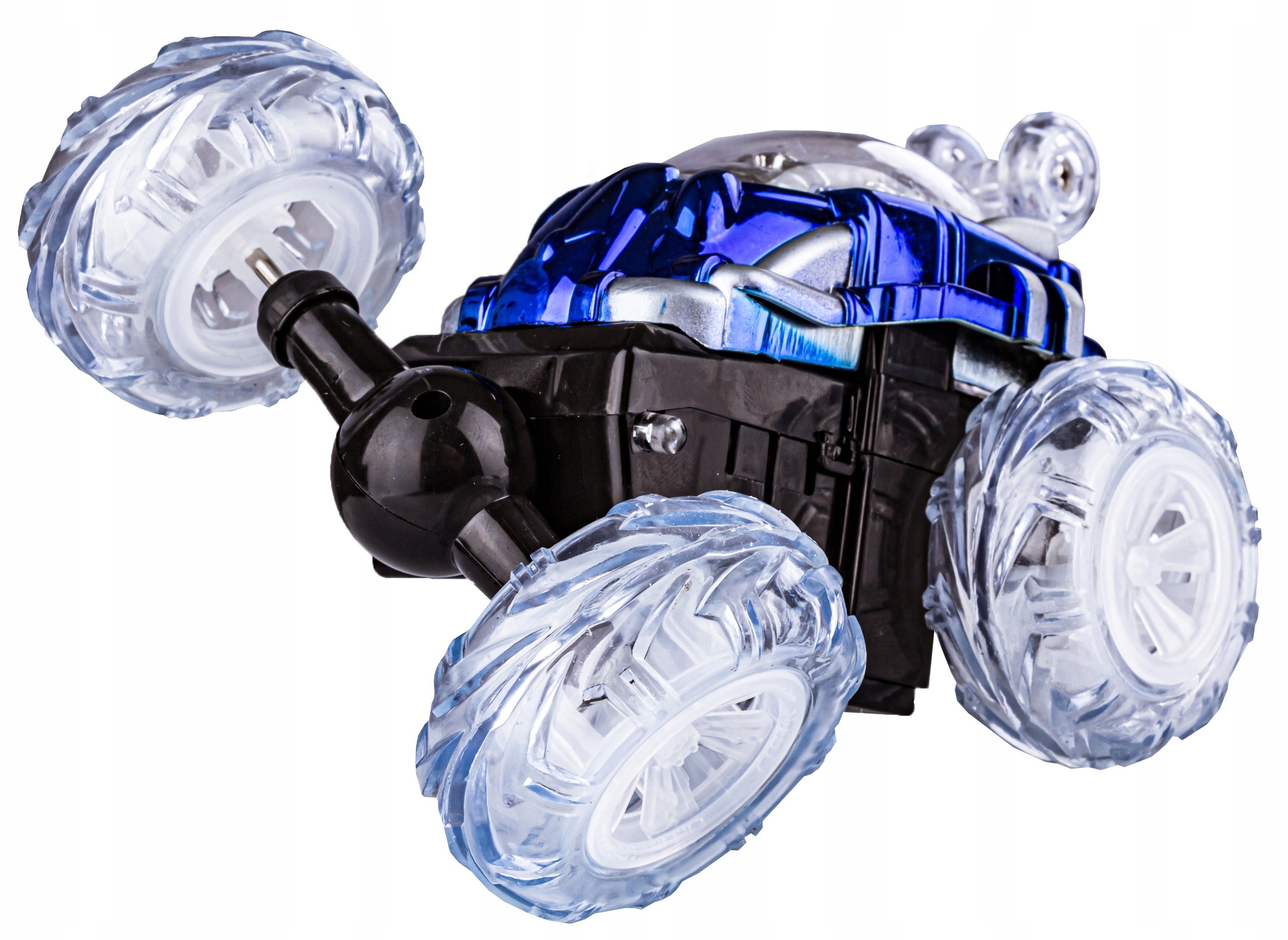 Игрушка может ездить как на четырех колесах, так и на двух, делая удивительную эволюцию. Кроме того, автомобиль все еще освещается красочными диодами, которые дают удивительные световые эффекты ночью.