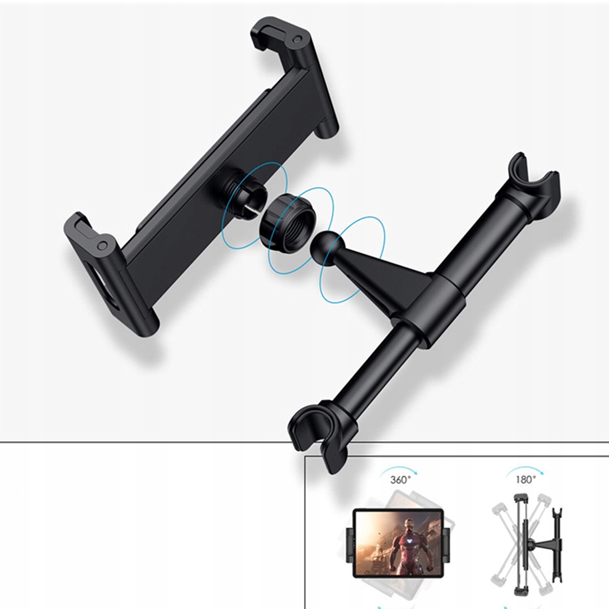 Путешествие на машине в течение нескольких часов в качестве пассажира больше не должно быть скучным! Выбирайте вращающуюся подставку для планшета и смартфона, благодаря которой каждая поездка станет временем, проведенным за любимым развлечением!