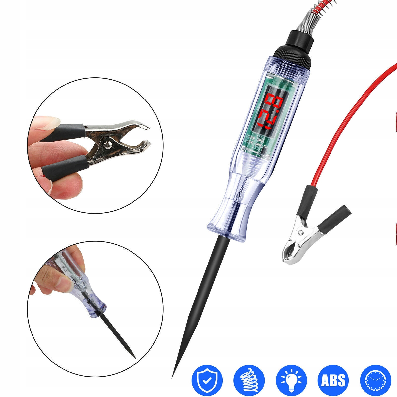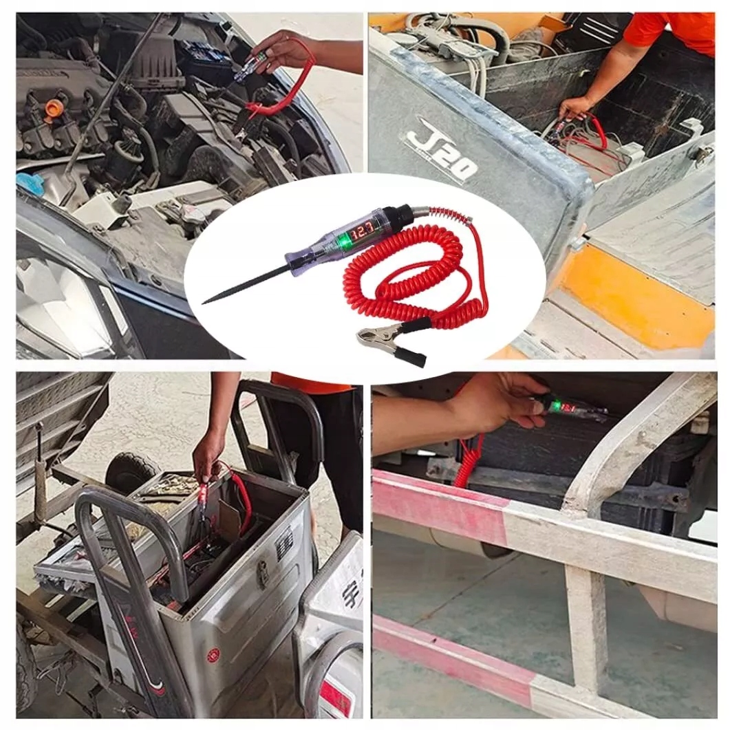 Широкое применение: профессиональный автомобильный тестер цепей/контрольная лампа с диапазоном испытаний 3 В-6 В-12 В-24 В-48 В постоянного тока, идеально подходит для тестирования различных электрических цепей автомобиля, быстрой проверки автомобильных фар, задних фонарей, цепей указателей поворота, поврежденных розеток, соединений предохранителей и других проводов и цепей.
