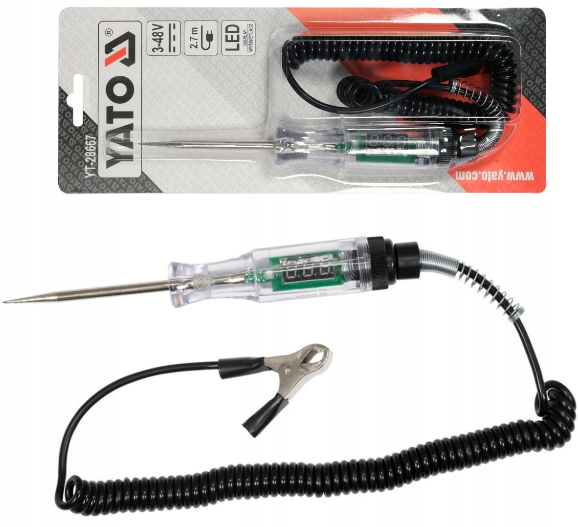 АВТОМОБІЛЬНИЙ ТЕСТЕР YATO ТЕСТЕР НАПРУГИ 3-48В З РК-ДИСПЛЕЄМ YT-28667