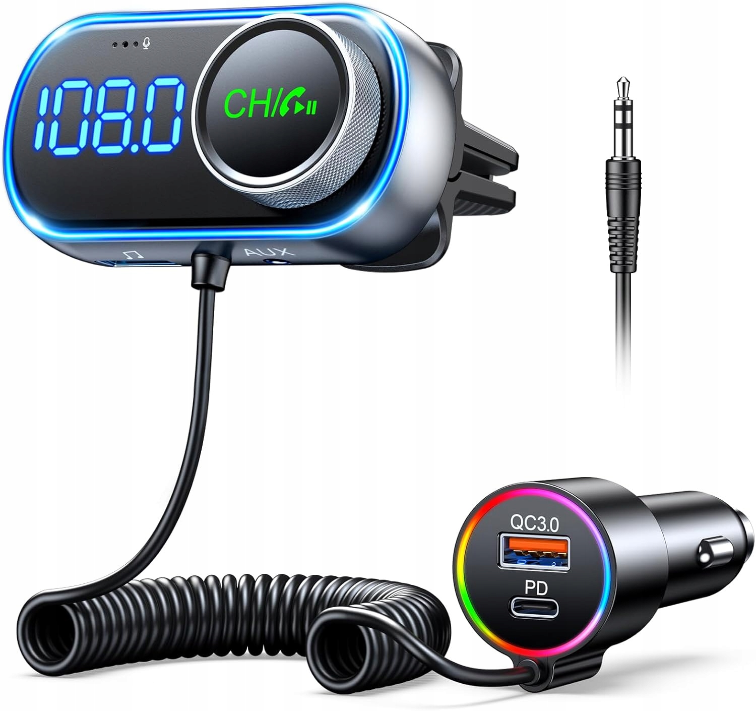 Автомобильный адаптер EOIWUY Bluetooth 5.3, [HiFi Bass Boost] Автомобильный FM-передатчик Bluetooth с PD 36 Вт и быстрым автомобильным зарядным устройством QC3.0 18 Вт, беспроводная Bluetooth-гарнитура для автомобиля, голосовой помощник, выход AUX