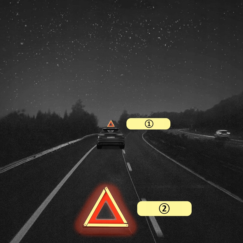 ▶ Автомобильный знак аварийной остановки представляет собой пассивный светоотражающий элемент, изготовленный из светоотражающего пластика. Когда водитель сталкивается с внезапной поломкой на дороге и останавливается для ремонта или аварии, светоотражающие свойства треугольного предупреждающего знака могут быть использованы для предупреждения других транспортных средств о необходимости избежать вторичной аварии.