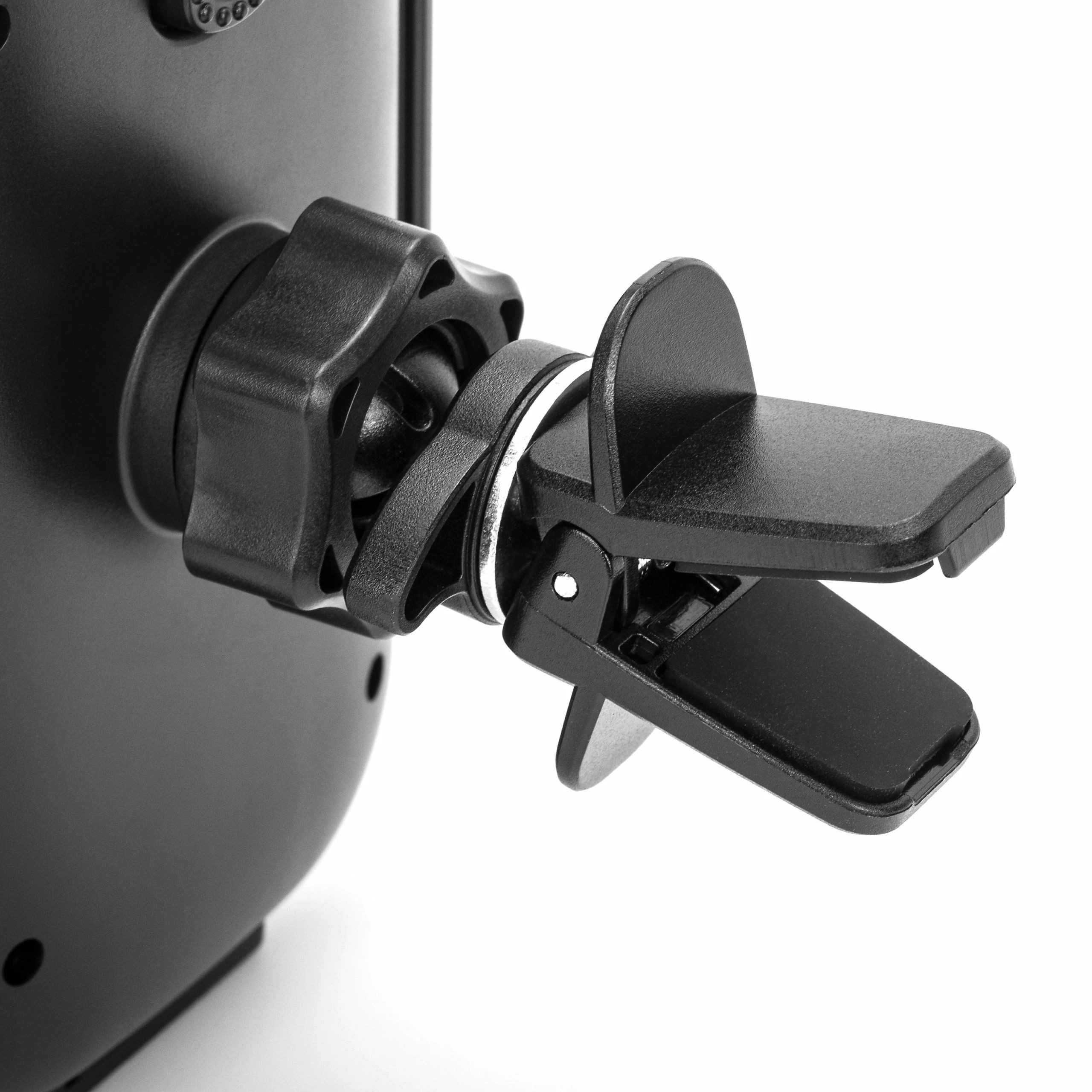 Благодаря вращающейся на 360 градусов головке и регулируемому углу наклона рукоятки на 270 градусов пользователь может легко настроить положение телефона в соответствии со своими потребностями. Держатель совместим с телефонами шириной от 53 до 92 мм, что делает его идеальным выбором для большинства моделей.
