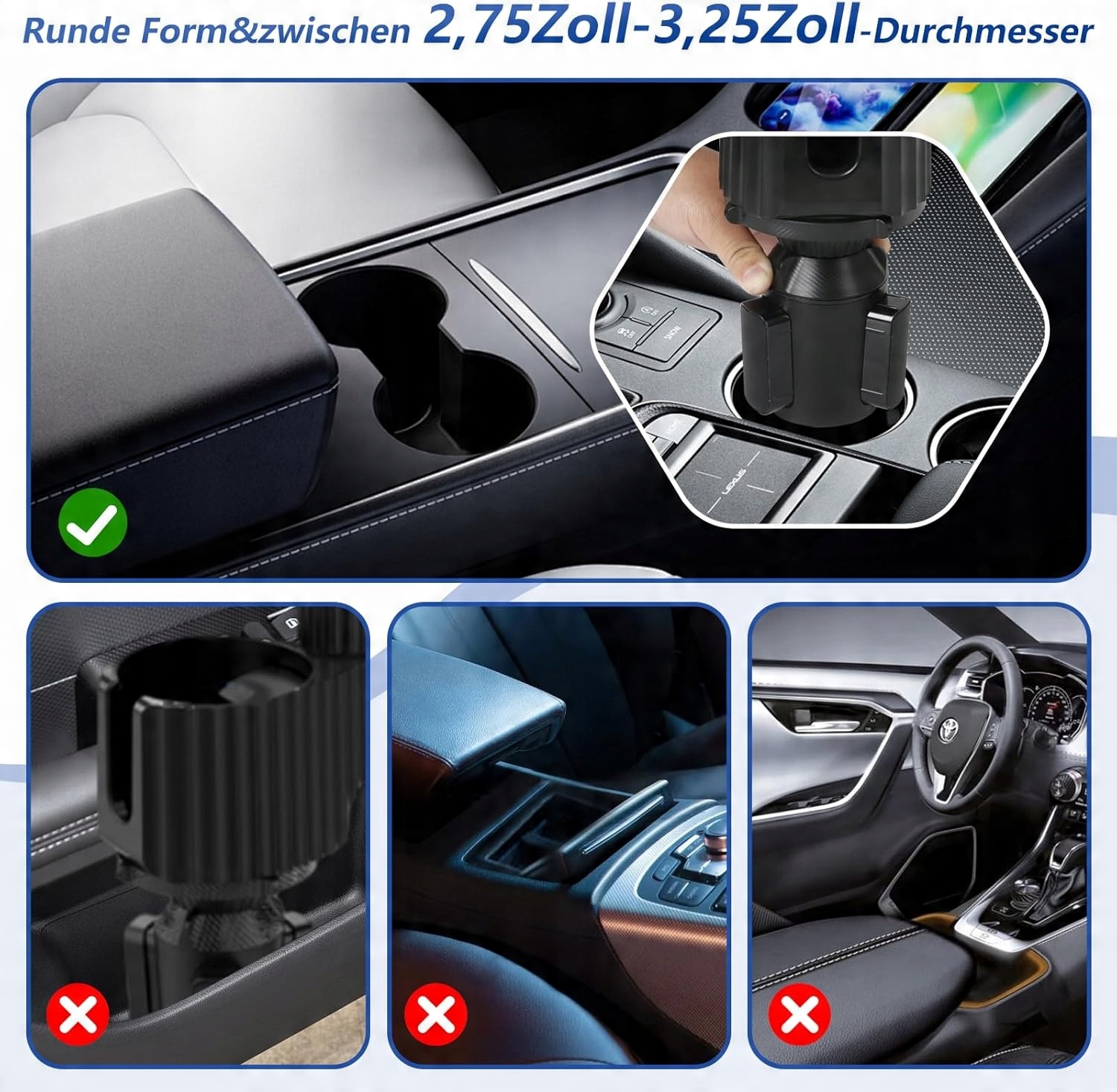 Основание расширителя можно регулировать в диапазоне 65-90 мм, что обеспечивает стабильную фиксацию на различных типах подстаканников/подстаканниках. в транспортных средствах. Благодаря поворотному механизму вы можете легко регулировать ручку, а силиконовые накладки на удлинителе обеспечивают дополнительное трение и устойчивость. Изделие подходит ко многим моделям автомобилей, обеспечивая широкую совместимость.