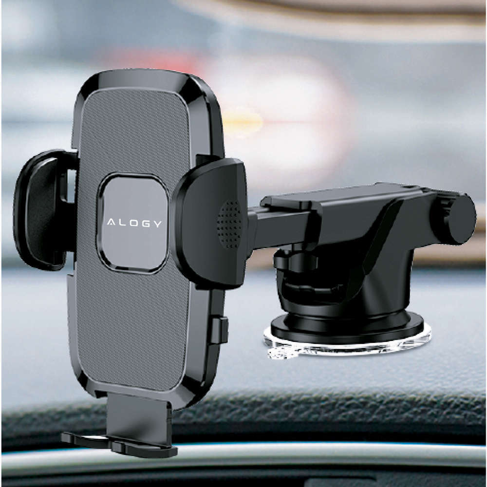 ▶️ Прочный автомобильный держатель для телефона Alogy на лобовое стекло в кабину приборной панели Черный