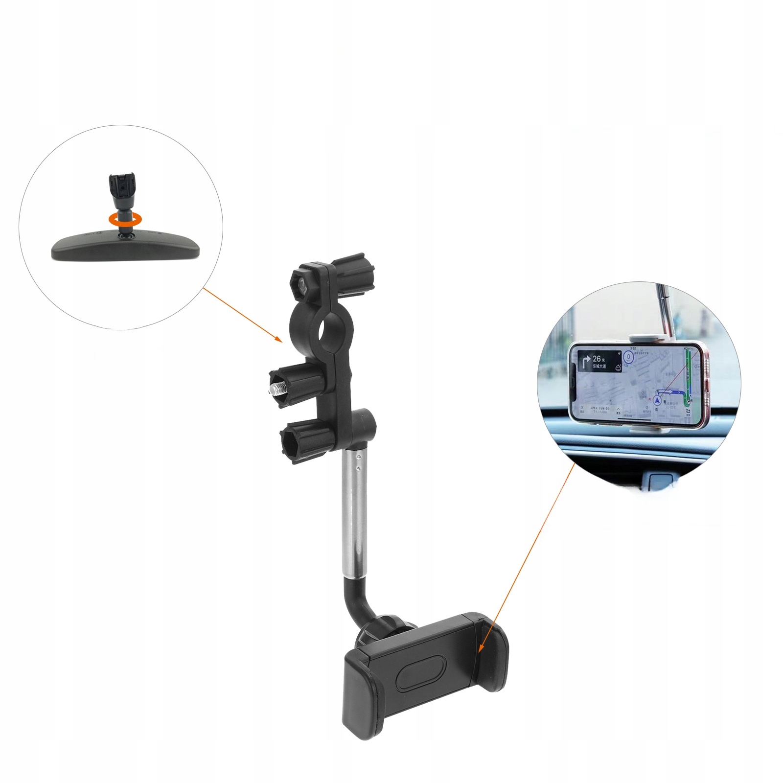 ВРАЩАЮЩИЙСЯ ДЕРЖАТЕЛЬ АВТОМОБИЛЬНОГО ТЕЛЕФОНА ДЛЯ ЗЕРКАЛА С ПРОЧНЫМ ЗАЖИМОМ