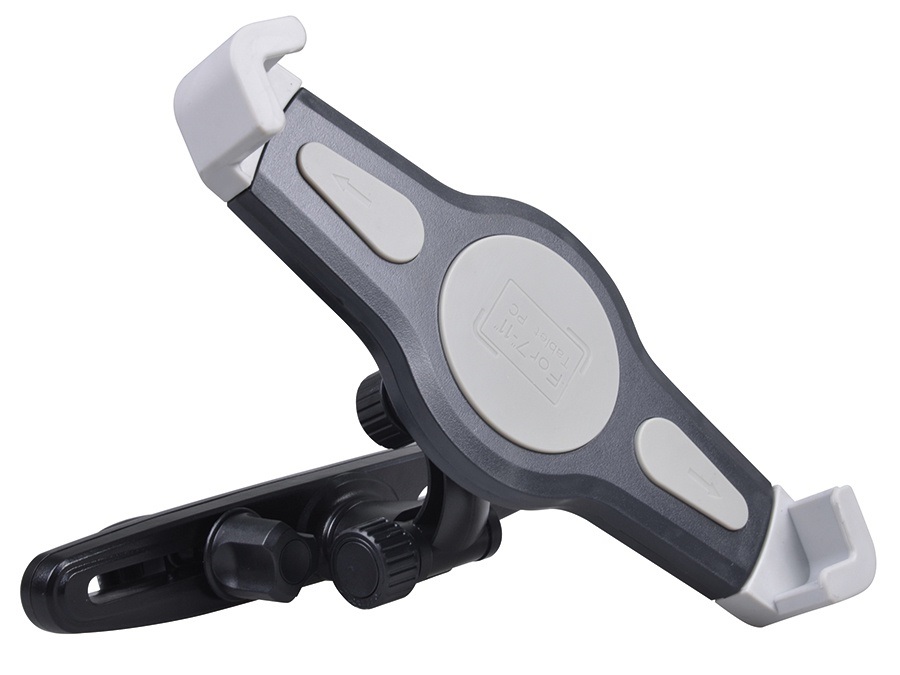 Универсальный автомобильный держатель для планшетов и других электронных устройств. Держатель крепится к подголовнику кресла. Благодаря прочным элементам держатель чрезвычайно прочный и долговечный. Система регулировки позволяет установить держатель с планшетом под нужным углом.