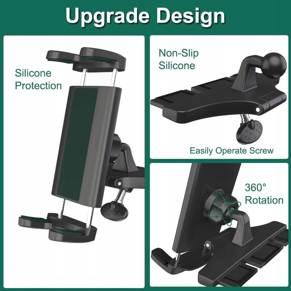 - Полная защита: 1. Автомобильный держатель планшета не царапается и не царапается. Повреждает ваши устройства благодаря своей мягкой силиконовой поверхности. 2. Складная подставка для ног обеспечивает удобную зарядку в пути. 3. Простая сборка без инструментов. 4. Стабильная треугольная конструкция держателя подходит для слота для компакт-дисков различной толщины, делает планшет более устойчивым и не трясется.