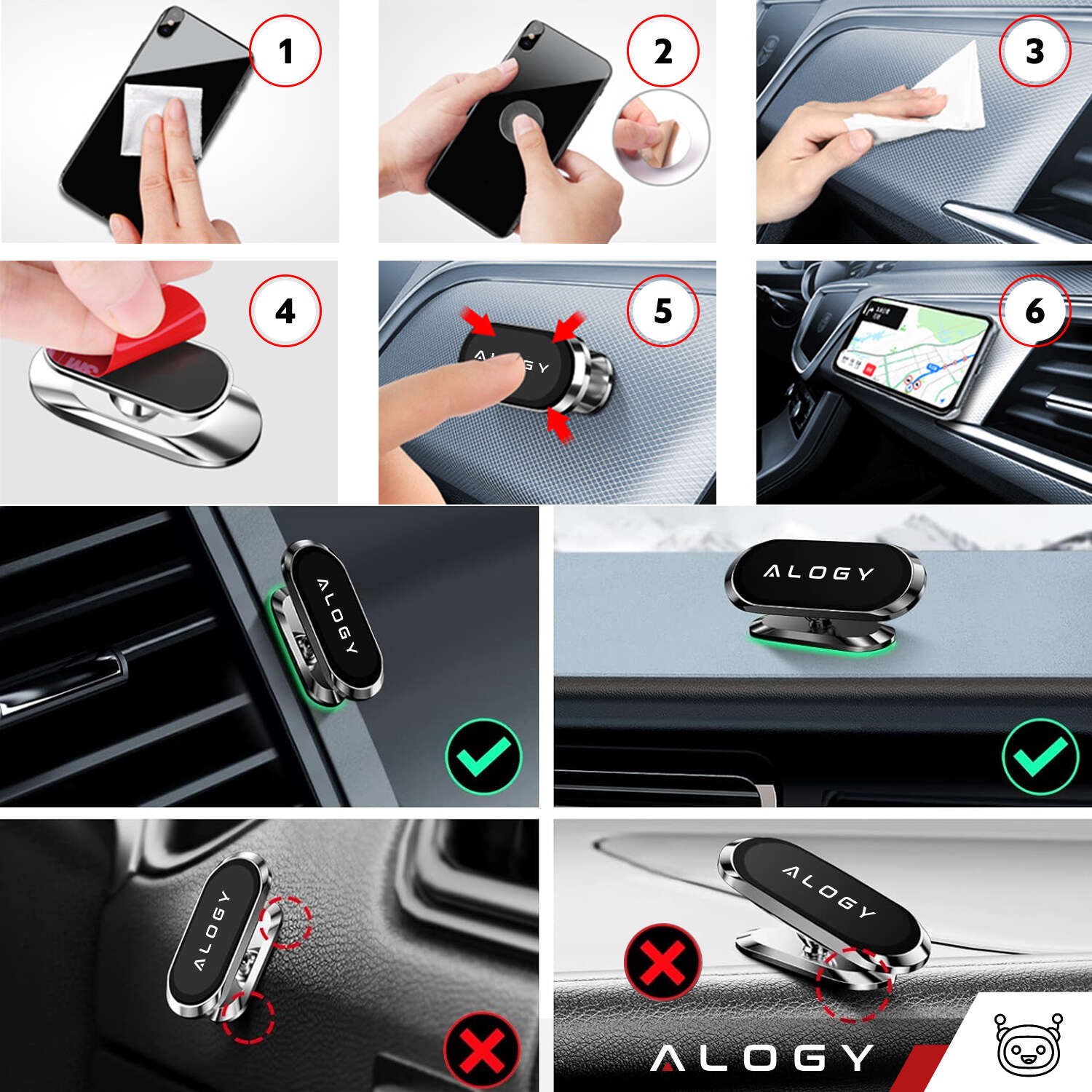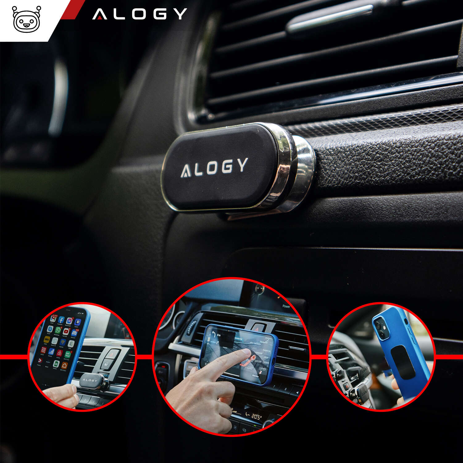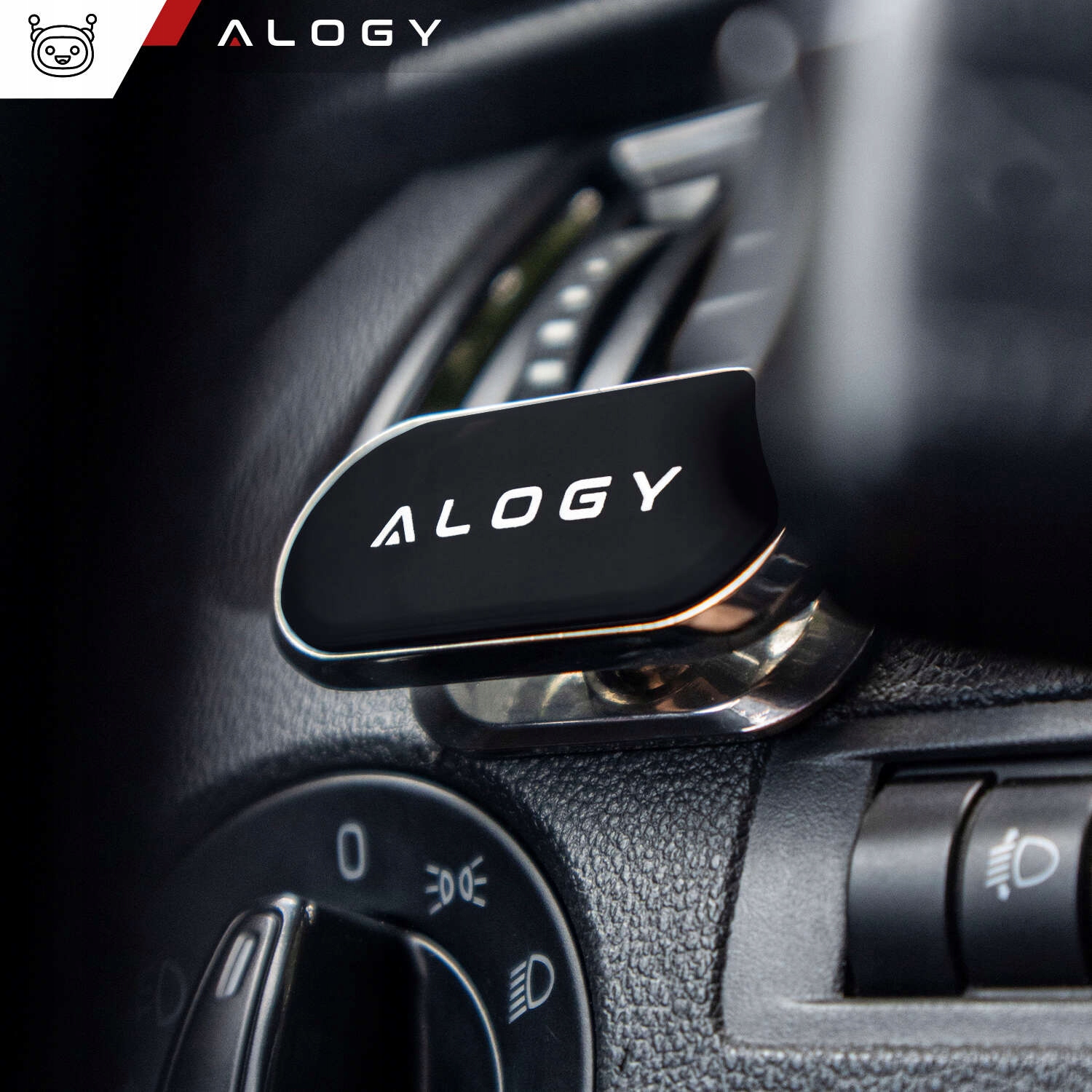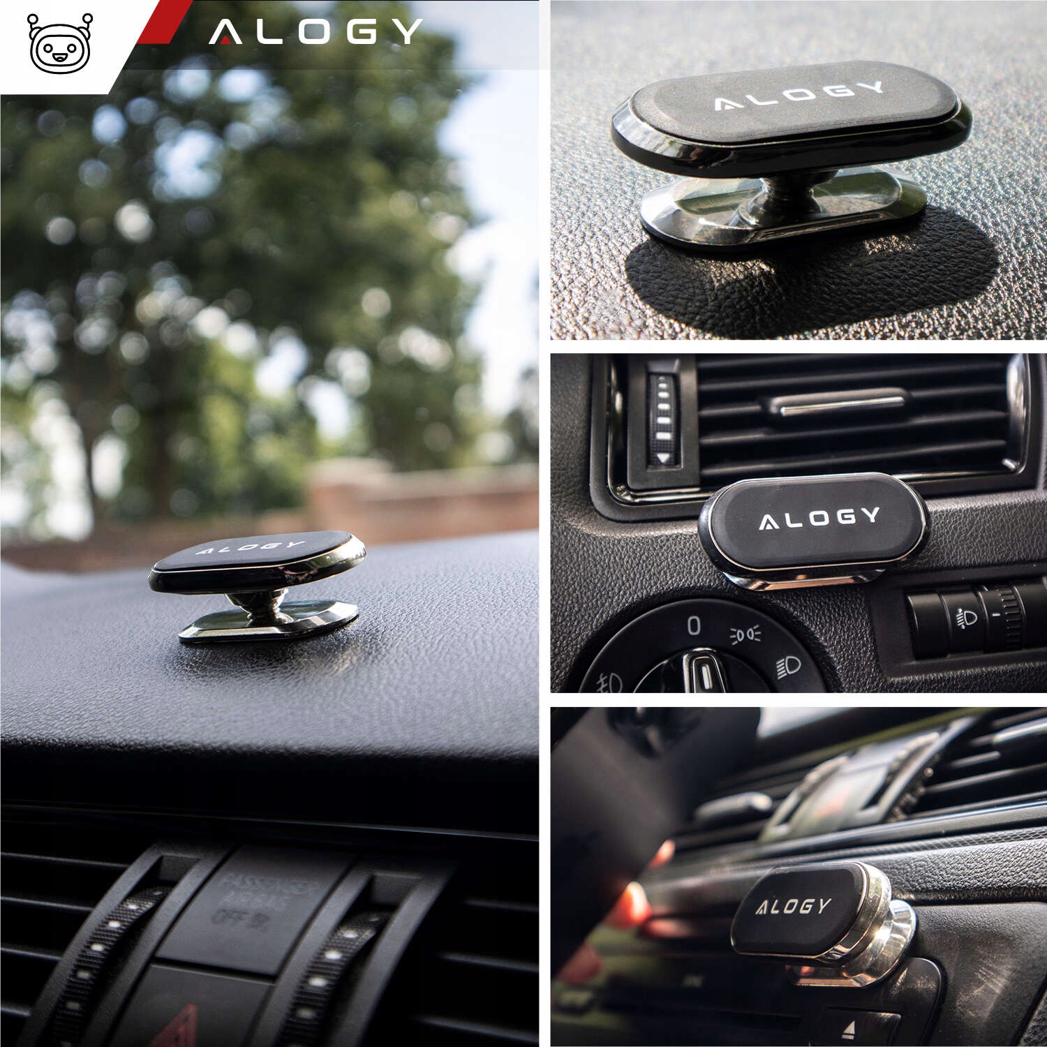 ▶️ Автомобильный магнитный держатель Alogy для автомобиля, универсальный, для телефона, в кабину, на приборную панель, Черный