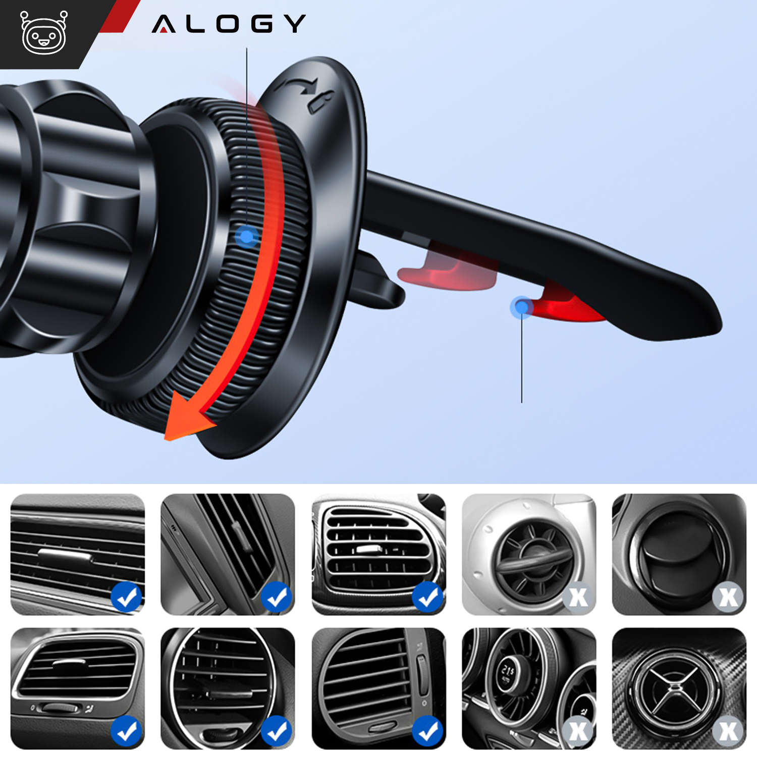 ✅ Держатель оснащен подвеской, которая совместима с большинством вентиляционных решеток. Ниже приведены типы решеток, с которыми работает держатель: