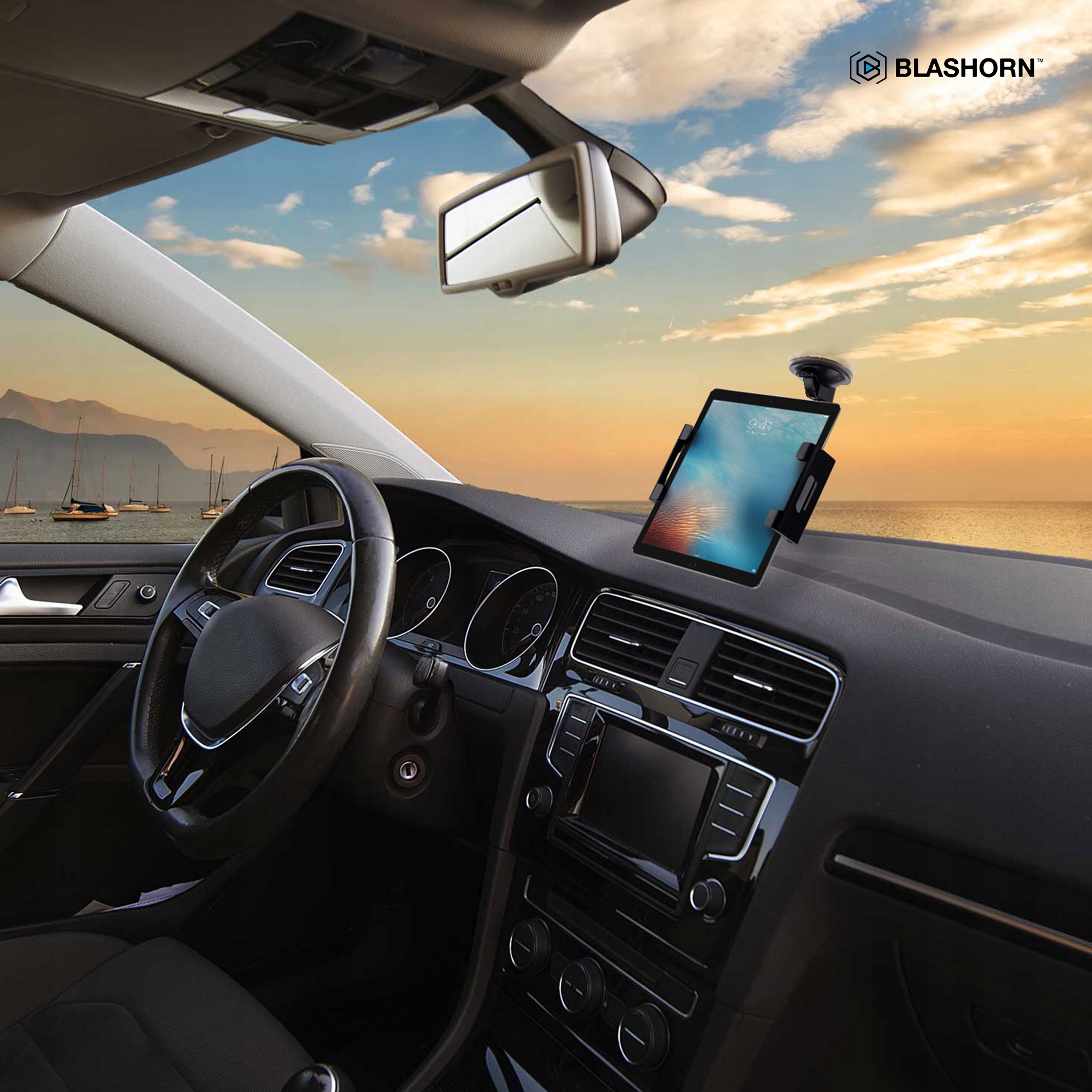 Благодаря дополнительной стреле, входящей в комплект, держатель можно закрепить и на лобовом стекле, чтобы не ограничивать обзорность во время движения, или на подголовнике.
