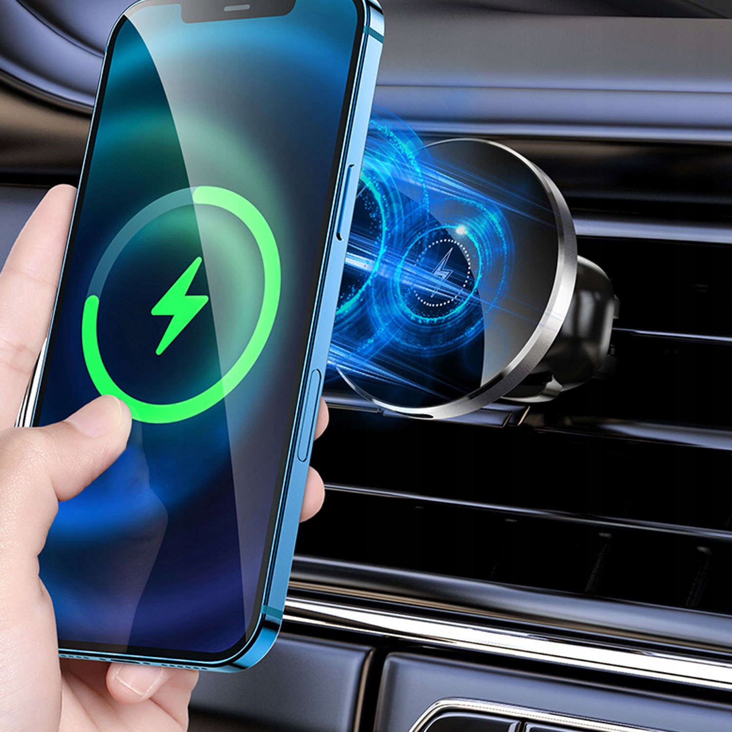 ▶️ Автомобильный держатель 2 в 1 с индуктивным зарядным устройством Alogy Airvent mag Safe QI Зарядное устройство для магнитного сейфа 15 Вт для решетки Черный