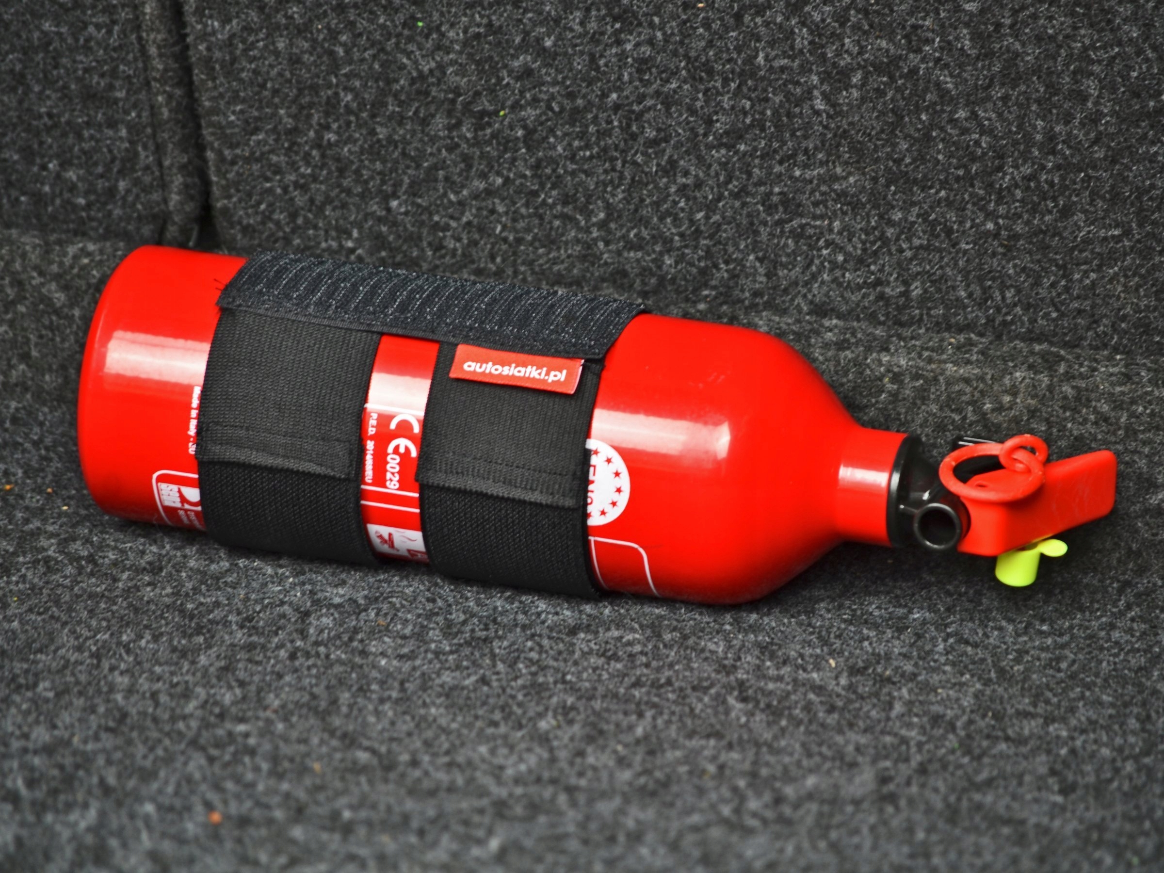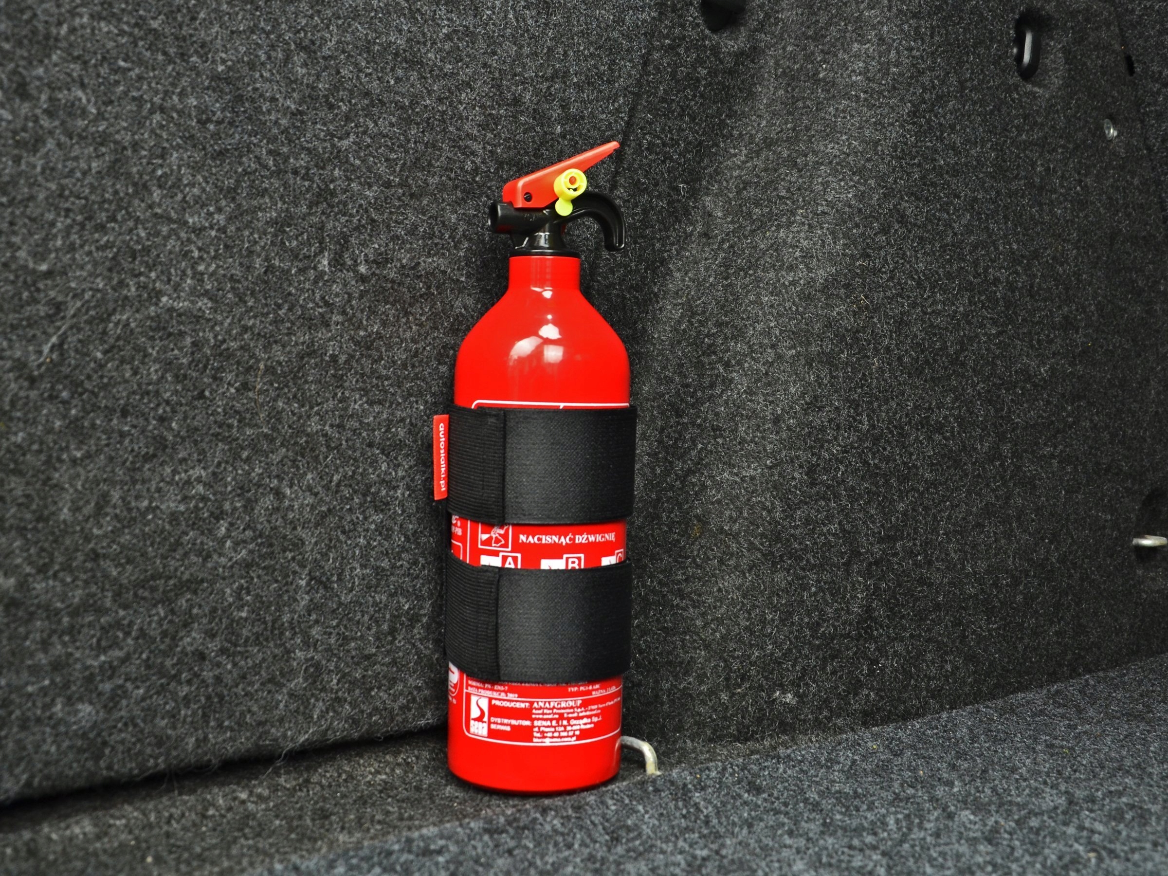 Перед покупкой стоит убедиться, что липучка прилегает к обивке багажника. Если липучка, например, от куртки или сумки, прилипнет к ковру, лента огнетушителя будет вести себя таким же образом.