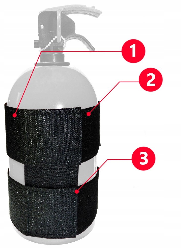 Большая поверхность застежки-липучки обеспечивает надежный захват транспортируемого огнетушителя.