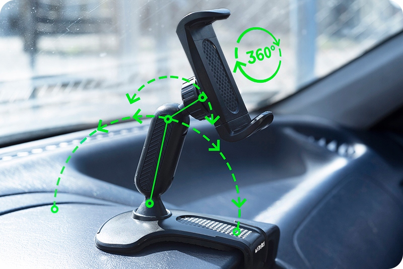 Каждый из двух рычагов держателя имеет диапазон перемещения 180°, поэтому вы найдете удобное положение для телефона в любой ситуации!
