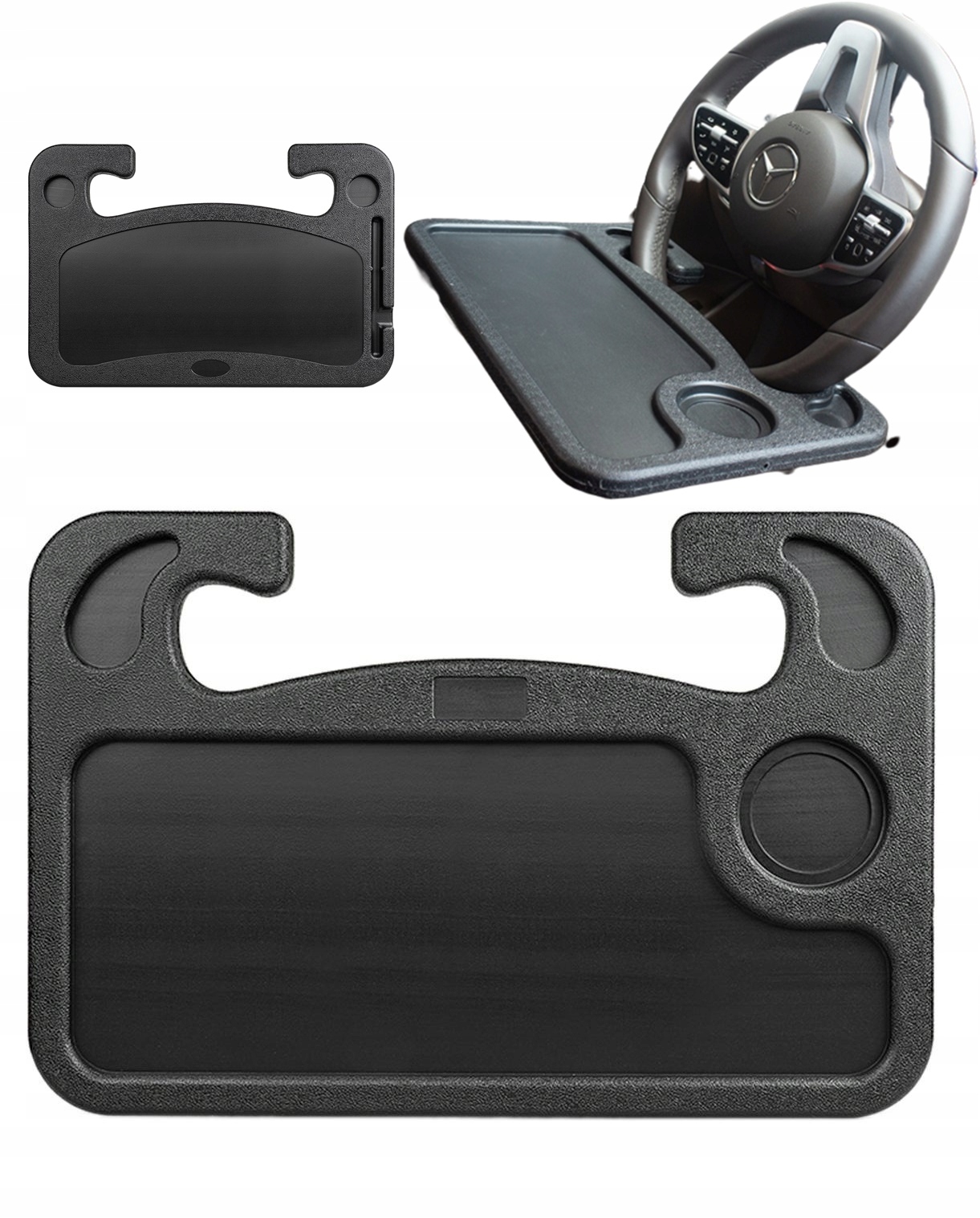 - Чрезвычайно практичный автомобильный столик, крепящийся на рулевое колесо.