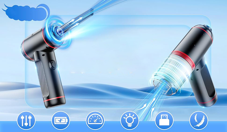 Благодаря сильной мощности ветра и уникальной способности очистки, он идеально подходит для выполнения подробных задач очистки, таких как удаление небольшой пыли с компьютеров 💻, клавишных ⌨, дивана 🛋 и автомобилей 🚗.