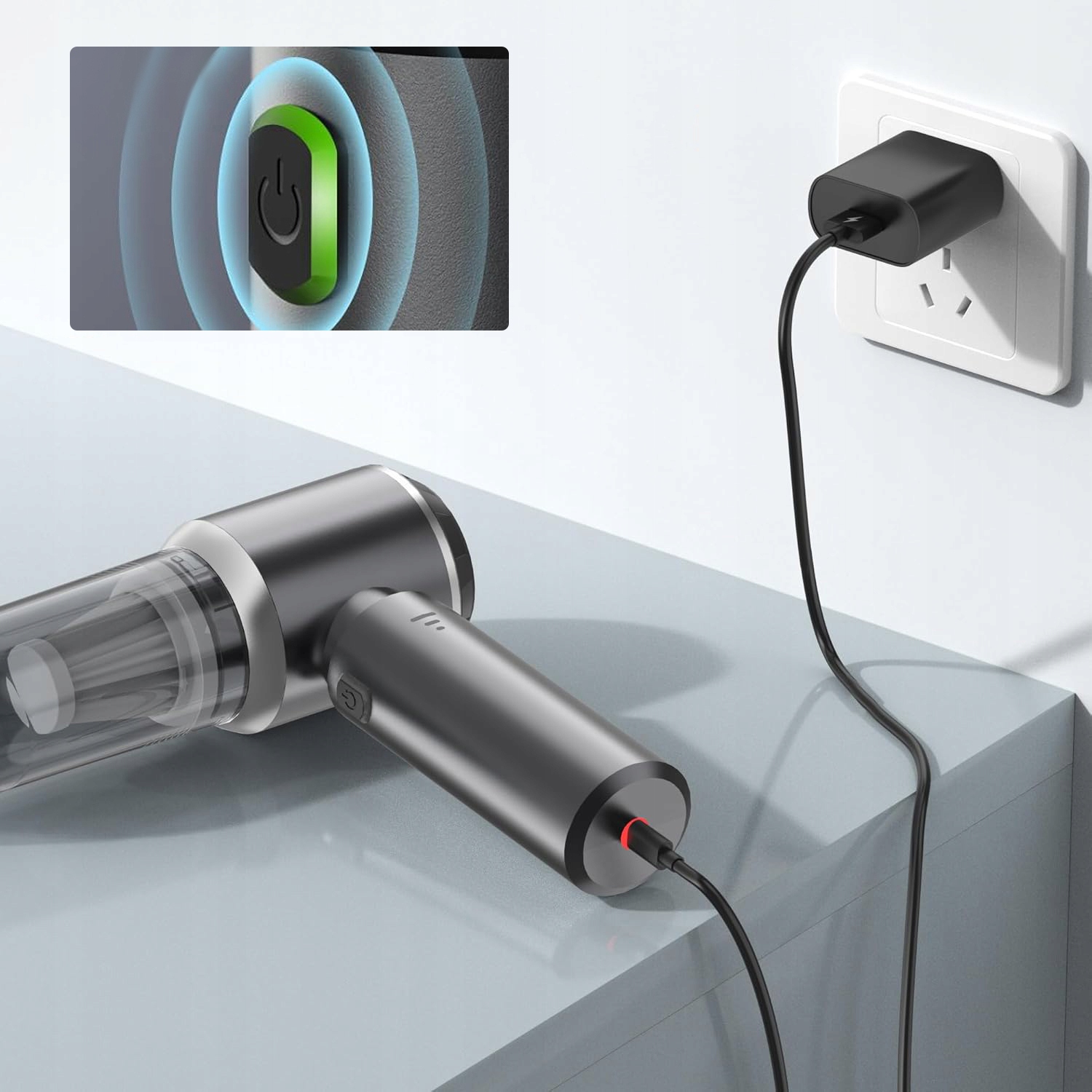 Этот эффективный чистящий вакуум беспроводного автомобиля оснащен встроенной батареей высокой пропускной способности 6000 мАч , который обеспечивает 15-30 минут чистки в зависимости от выбранной мощности всасывания. Портативный пылесос может быть быстро заряжен в кабеле зарядки типа C, и он может быть полностью заряжен всего за 3 часа.