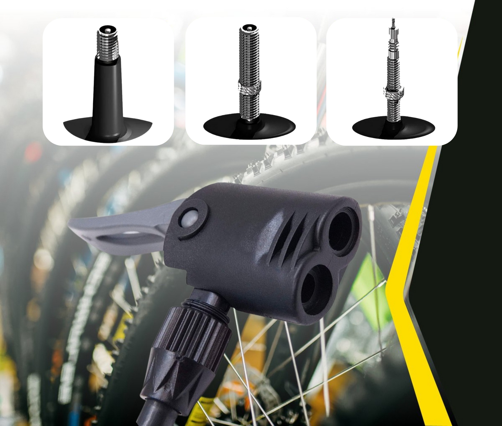 ✅обеспечивает крепление шланга к клапану. Стопорный рычаг фиксирует головку насоса на клапане.