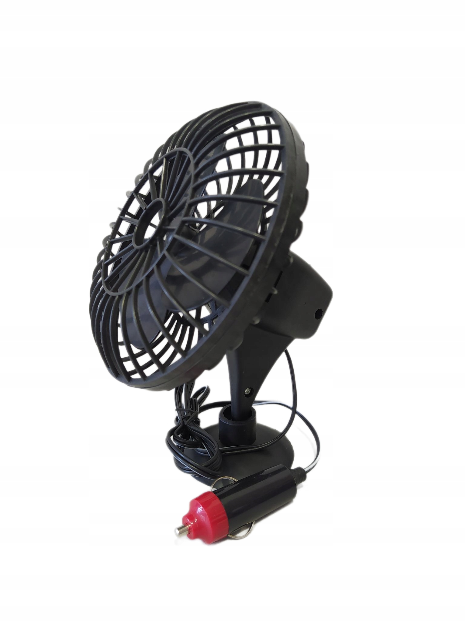 Автомобильный вентилятор с питанием от розетки прикуривателя (12В) мощностью 6Вт. Воздушный поток создает освежающий ветерок.