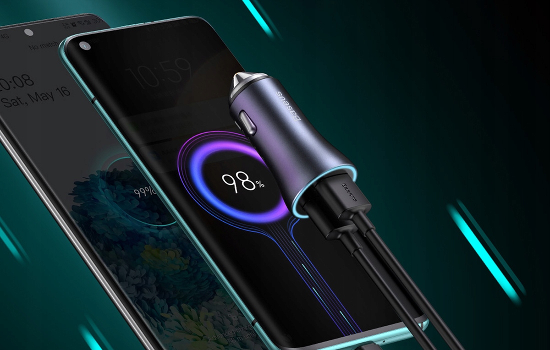 Автомобильное зарядное устройство Baseus поддерживает 4 протокола быстрой зарядки. Qualcomm Quick Charge 4.0 будет заряжать ваше устройство в 4 раза быстрее, чем стандартное зарядное устройство. Кроме того, обратная совместимость Quick Charge 3.0, 2.0, AFC, MTK гарантирует самый быстрый вариант зарядки. Опция Quick Charge 4.0 доступна через порт Type-C. К телефонам, совместимым с QC, относится Xiaomi 10/9. Протокол Huawei Fast Charge позволяет устройству заряжатьсябыстрее и не сильно нагреваться во время зарядки. Как и у Huawei, у Samsung есть собственный протокол быстрой зарядки. Благодаря Samsung Adaptive Charge ваш телефон будет заряжаться намного быстрее, чем при использовании обычного зарядного устройства. Технология Samsung будет заряжать такие модели, как S20, S9 и т. д. Power Delivery — это стандарт высоковольтной зарядки, который позволит заряжать ваше устройство быстро и безопасно. Зарядное устройство поддерживает версии 20 Вт и 18 Вт. Power Delivery совместим, например, с iPhone 12. Не забудьте проверить, поддерживает ли ваше устройство упомянутые стандарты быстрой зарядки. В комплекте вы найдете кабель Baseus Simple Wisdom для передачи данных USB-C — кабель Lightning длиной 1 м.