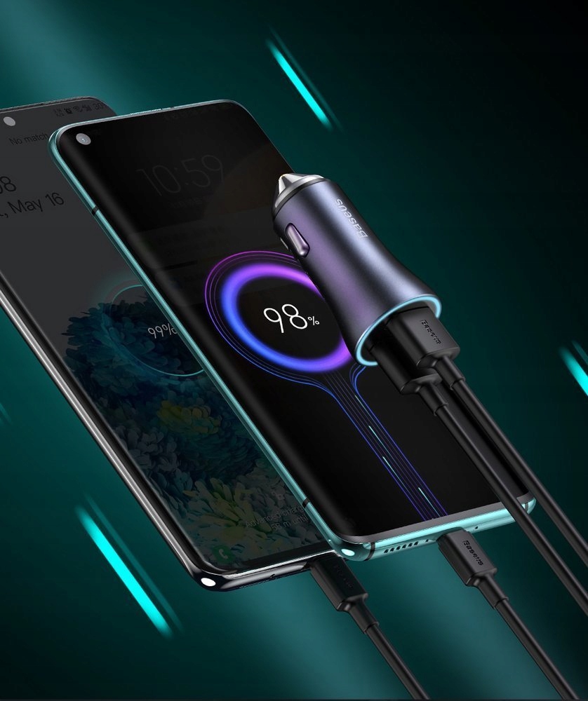 Быстрое автомобильное зарядное устройство Baseus PD 40 Вт 1x USB 1x USB-C 3000 мАч