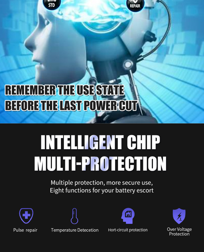 • Технология импульсного ремонта: Зарядное устройство использует технологию импульсного ремонта для диагностики и ремонта поврежденных аккумуляторов, что позволяет эффективно заряжать их.