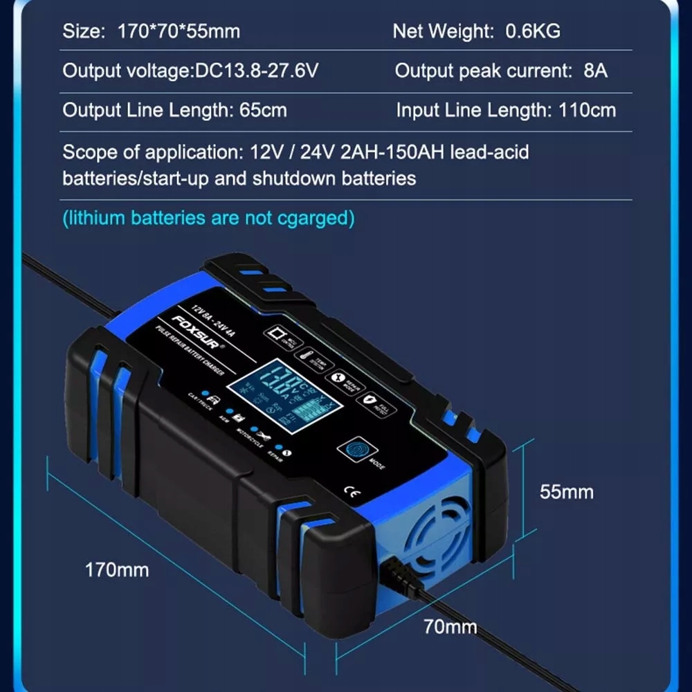 Это полностью автоматическое зарядное устройство с 3 этапами зарядки. Автоматическая зарядка защищает аккумулятор от перезаряда. Таким образом, вы можете оставлять зарядные устройства подключенными к аккумулятору на неопределенный срок.