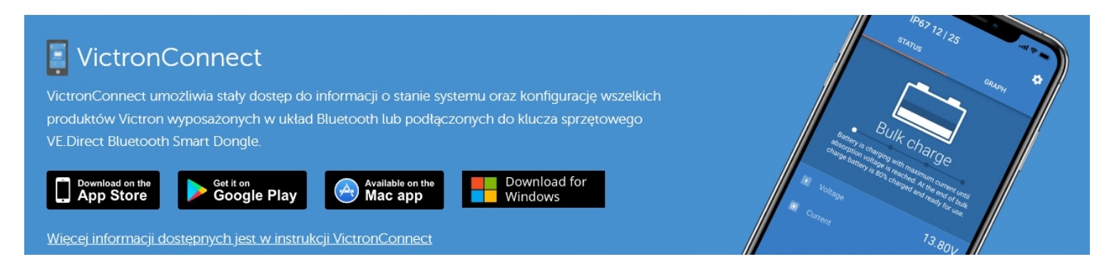Используя приложение VictronConnect и устройство с поддержкой Bluetooth (мобильный телефон или планшет), вы можете легко настраивать, отслеживать и обновлять прошивку.