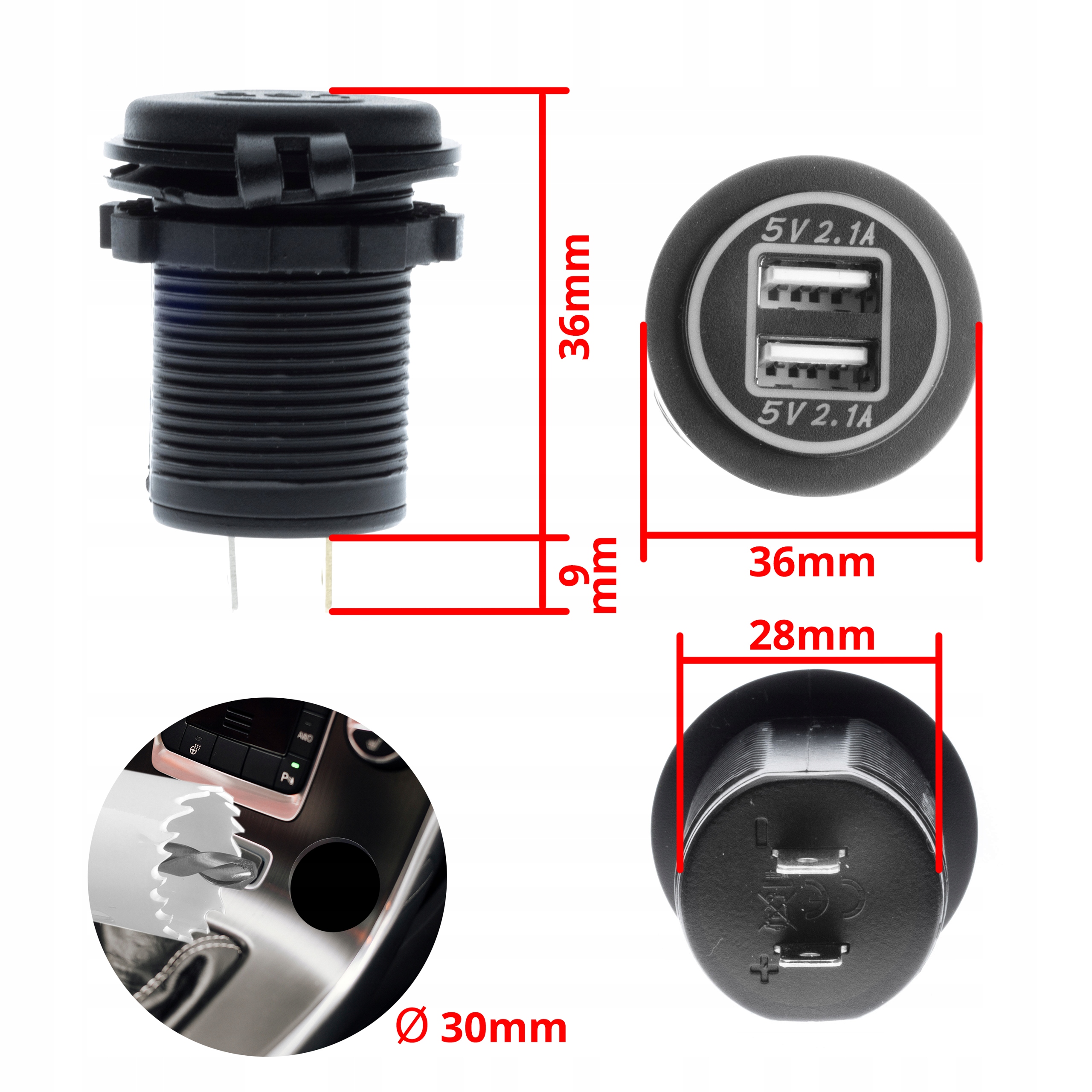 АВТОМОБІЛЬНИЙ ЗАРЯДНИЙ ПРИСТРІЙ 2 X USB В ГНІЗДО ПРИКУПИВАЛКИ 12V IP66 5V 4.2A
