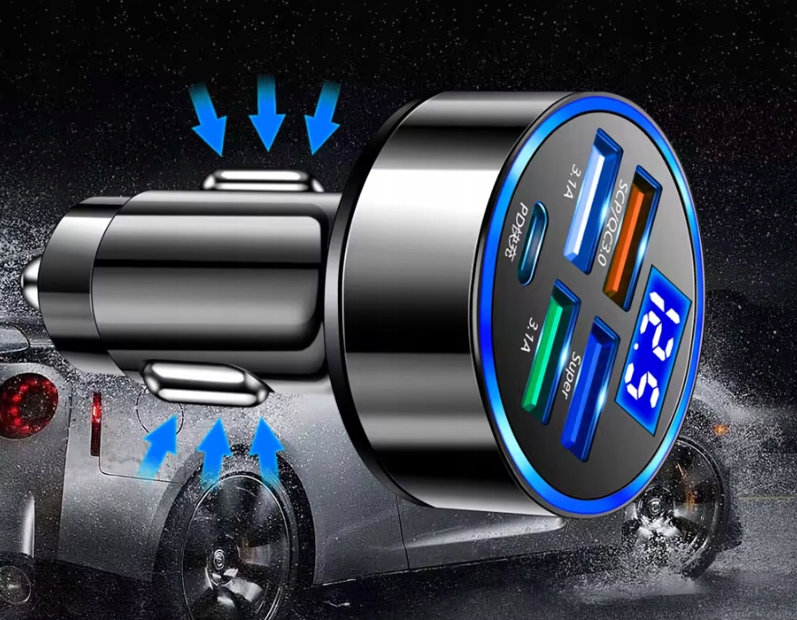 Автомобильное зарядное устройство с пятью портами — универсальное и практичное устройство, позволяющее заряжать множество устройств одновременно.
