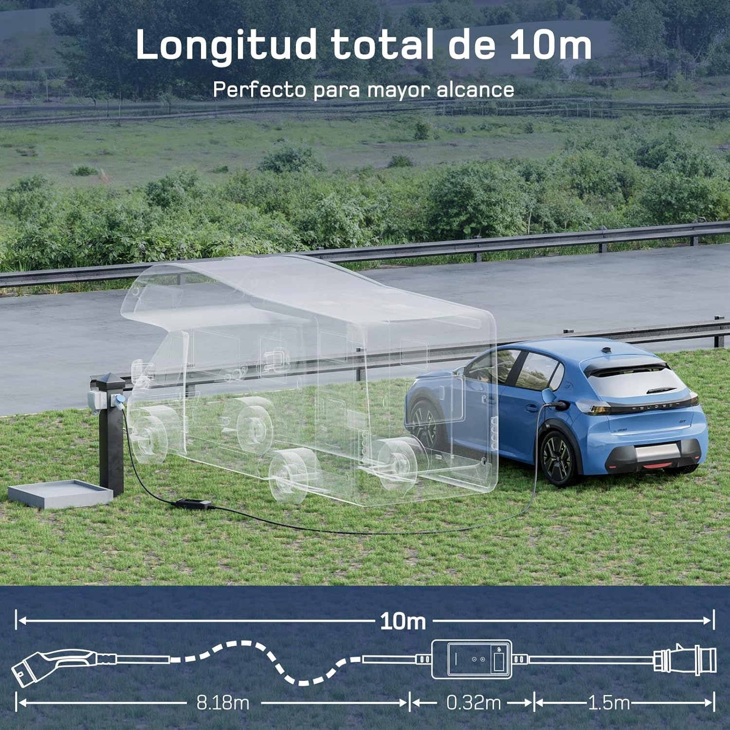 - 【Функция 2-в-1】Экономьте деньги и место с помощью этого портативного зарядного устройства 2-в-1. Зарядное устройство для электромобилей на 32 А имеет общую длину 10 метров, что делает его идеальным для повседневного домашнего использования или зарядки в путешествии.