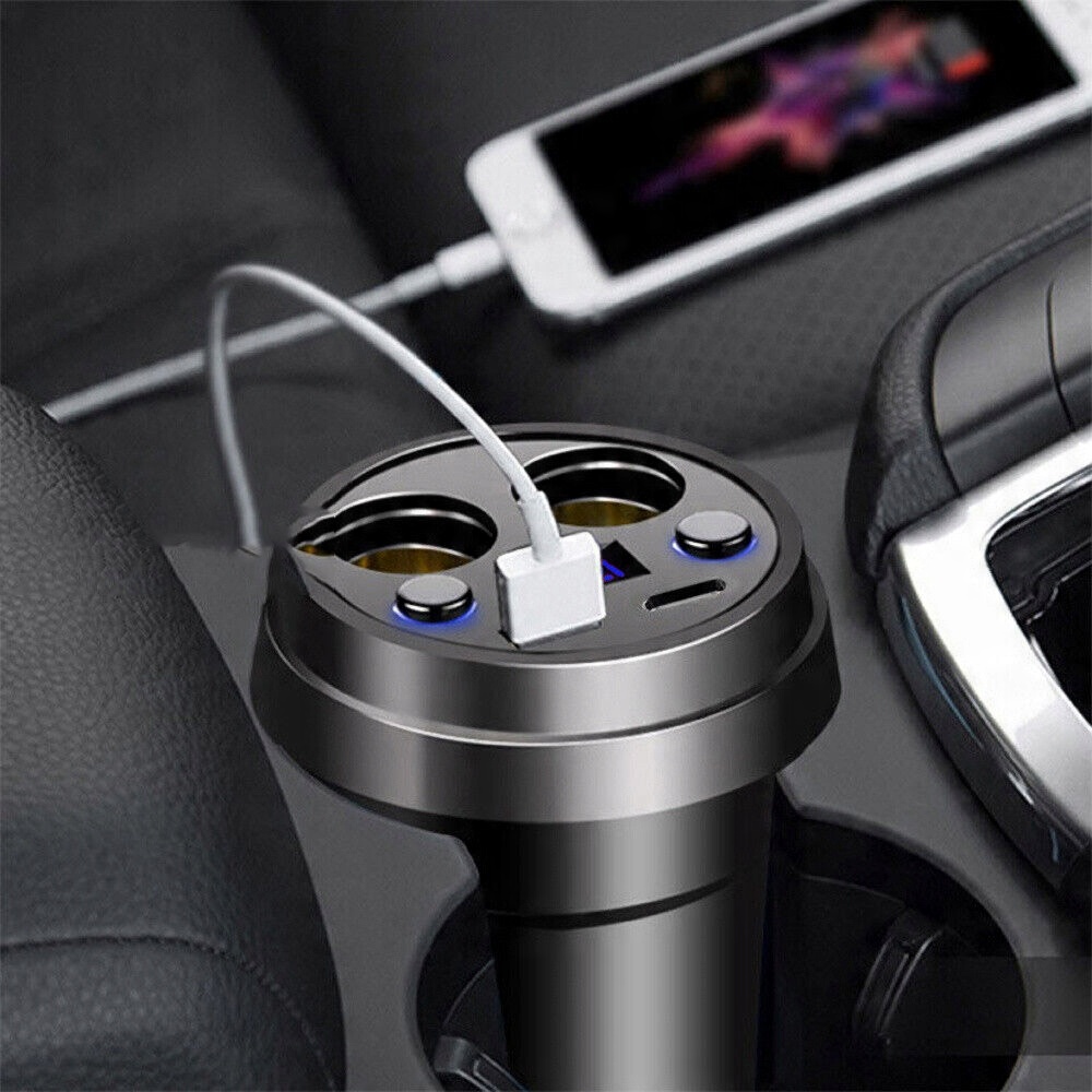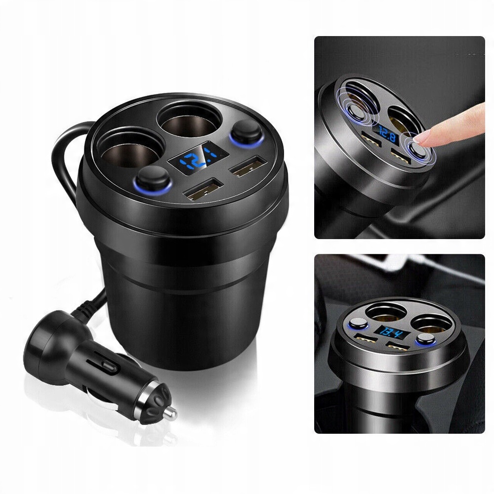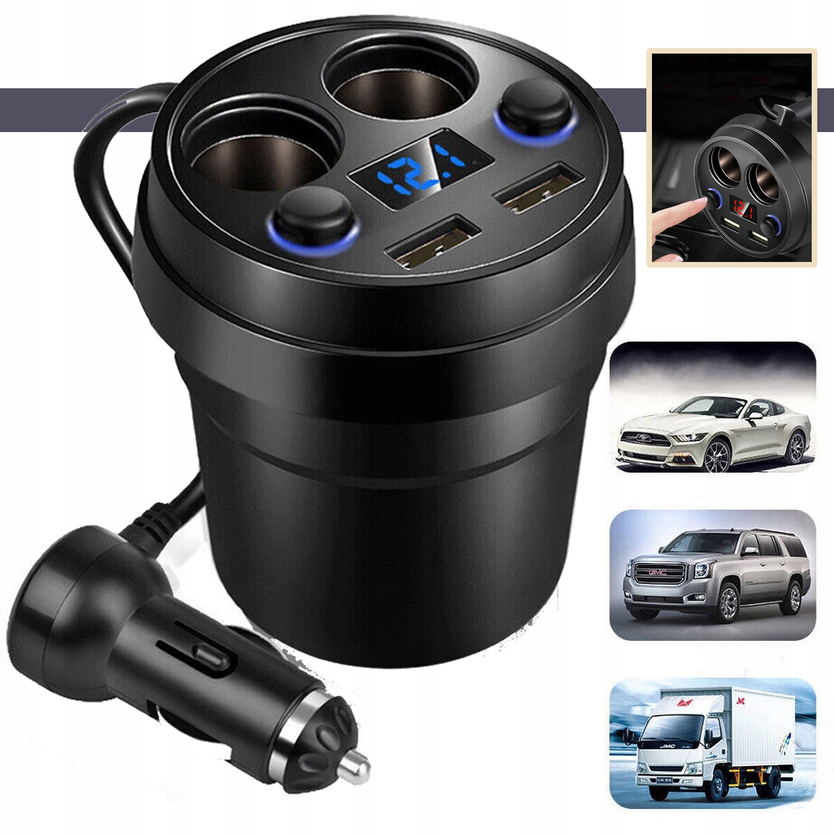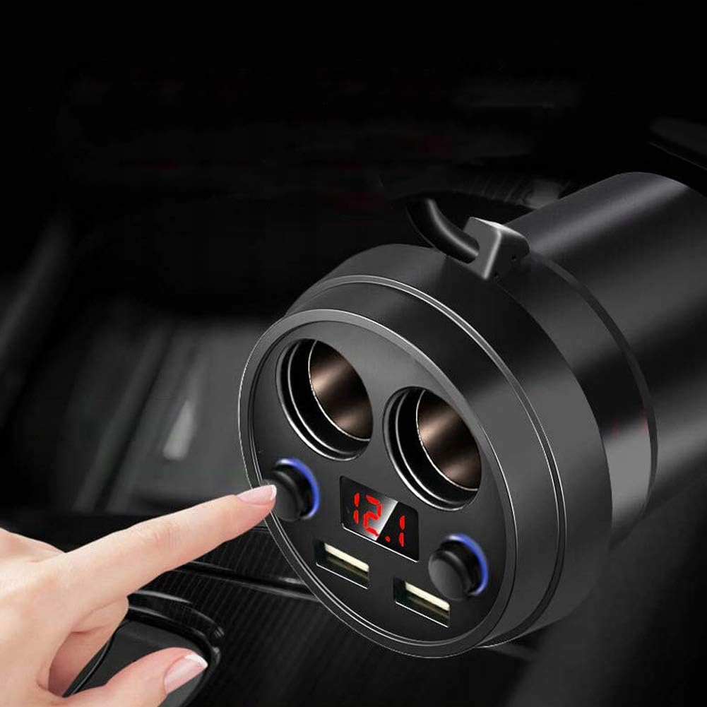 АВТОМОБІЛЬНИЙ ЗАРЯДНИЙ ПРИСТРІЙ АДАПТЕР З 2 РОЗЕТКАМИ, ПОДВІЙНИМИ ПОРТАМИ USB