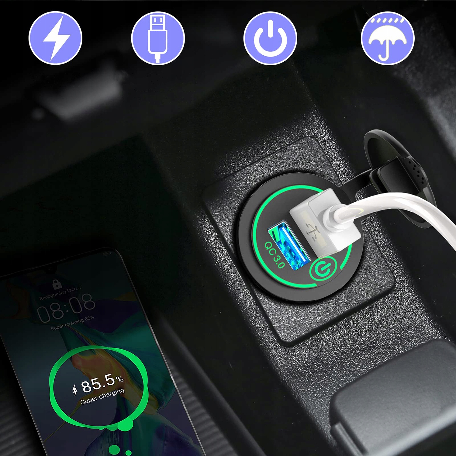 ⚡ 【usb Quick Charge 3.0】 b> Двойное зарядное устройство. b> QC 3.0 обеспечивает полную мощность 36 w и загружает два Совместимые устройства со скоростью 4 раза. Зарядка устройств от 0% до 80% занимает только 35 минут . Даже устройства, которые не поддерживают быстрой зарядной нагрузки как можно скорее. Кроме того, встроенная интеллектуальная схема IC обеспечивает стабильный выходной ток без каких -либо колебаний. B> оснащен Touch Touch A Switch, который управляет двумя USB -портами и издает тонкий зеленый светодиодный свет. Он предотвращает потерю энергии, экономит энергию и продлевает срок службы как продукта, так и подключенных устройств. Зеленый светодиодный свет также облегчает местоположение в темноте. Транспортные средства, в том числе лодки, мотоциклы, квадроциклы, транспортные средства для кемпинга и многое другое. Он может заряжать различные устройства, такие как iPhone, iPad, AirPods, Samsung, Google, Moto, LG, ZTE, HTC, BLU, планшеты, банки силовых, спортивные часы, коммутаторы, автомобильные камеры и другие . Этот продукт идеально подходит для водителей, которые должны заряжать устройства при путешествиях. > PA66 , который выдерживает экстремальные температуры как при высоких, так и при низких температурах. Он также обладает антиобладающими свойствами, обеспечивающими безопасность. Кроме того, он обеспечивает защиту от перегрузки, перегрузки и коротких замыканий , обеспечивая безопасность устройств во время зарядки