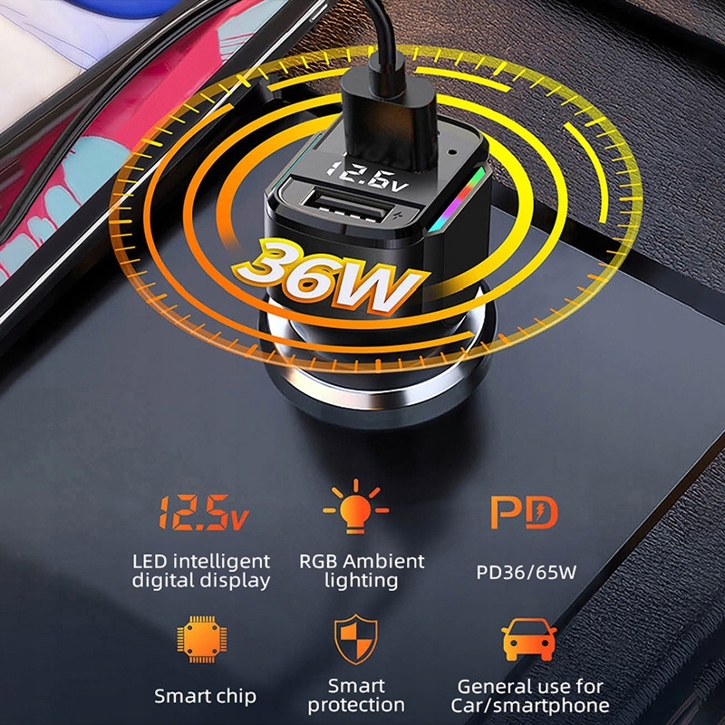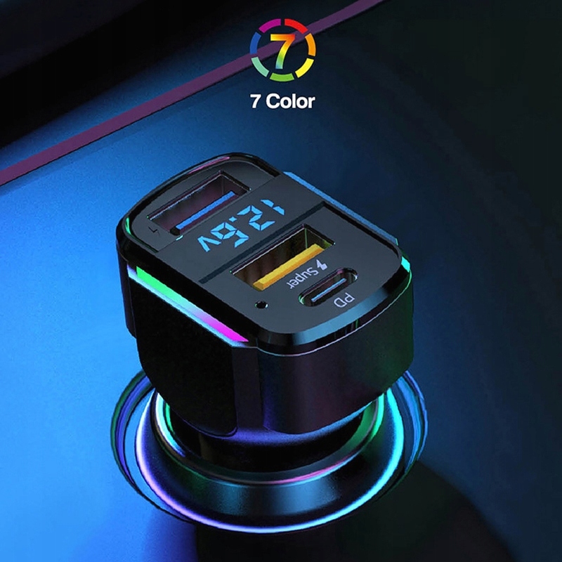 Многофункциональное автомобильное зарядное устройство K3 RGB PD, двухпортовое USB-зарядное устройство для быстрой зарядки