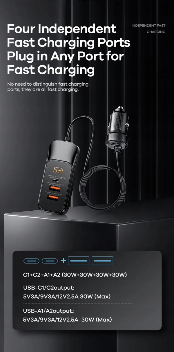 Автомобильное зарядное устройство Remax — элегантное устройство из серии YAYSHIH с впечатляющей мощностью 120 Вт. Благодаря усовершенствованной технологии PD ( Power Delivery) функции быстрой зарядки и QC (Quick Charge), это превосходное зарядное устройство. обеспечивает исключительную эффективность и молниеносную скорость зарядки ваших мобильных устройств.