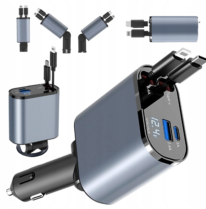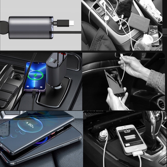 ✔ Современный дизайн и кабельные кабели b> делают наше зарядное устройство идеальным выбором для часто путешествующих людей. Практический и эстетический , идеально сочетается с интерьером любого автомобиля.