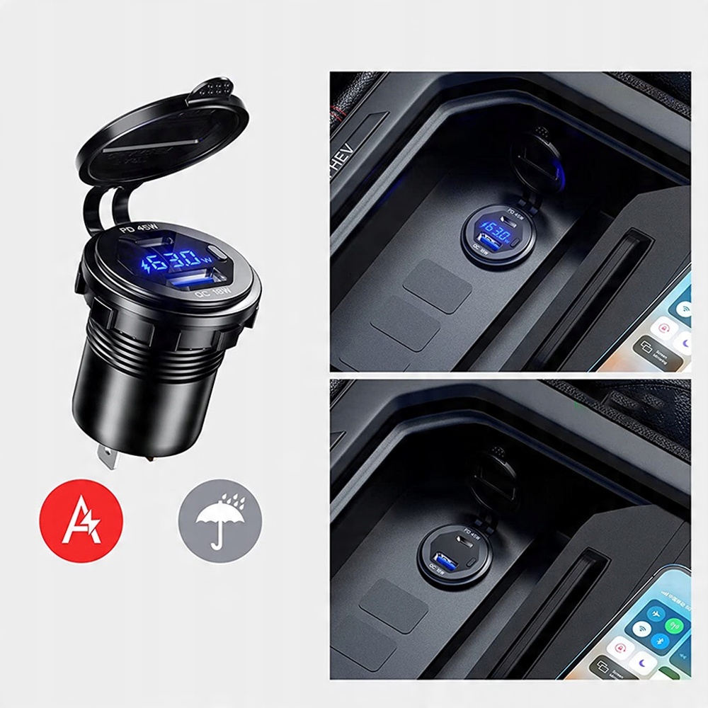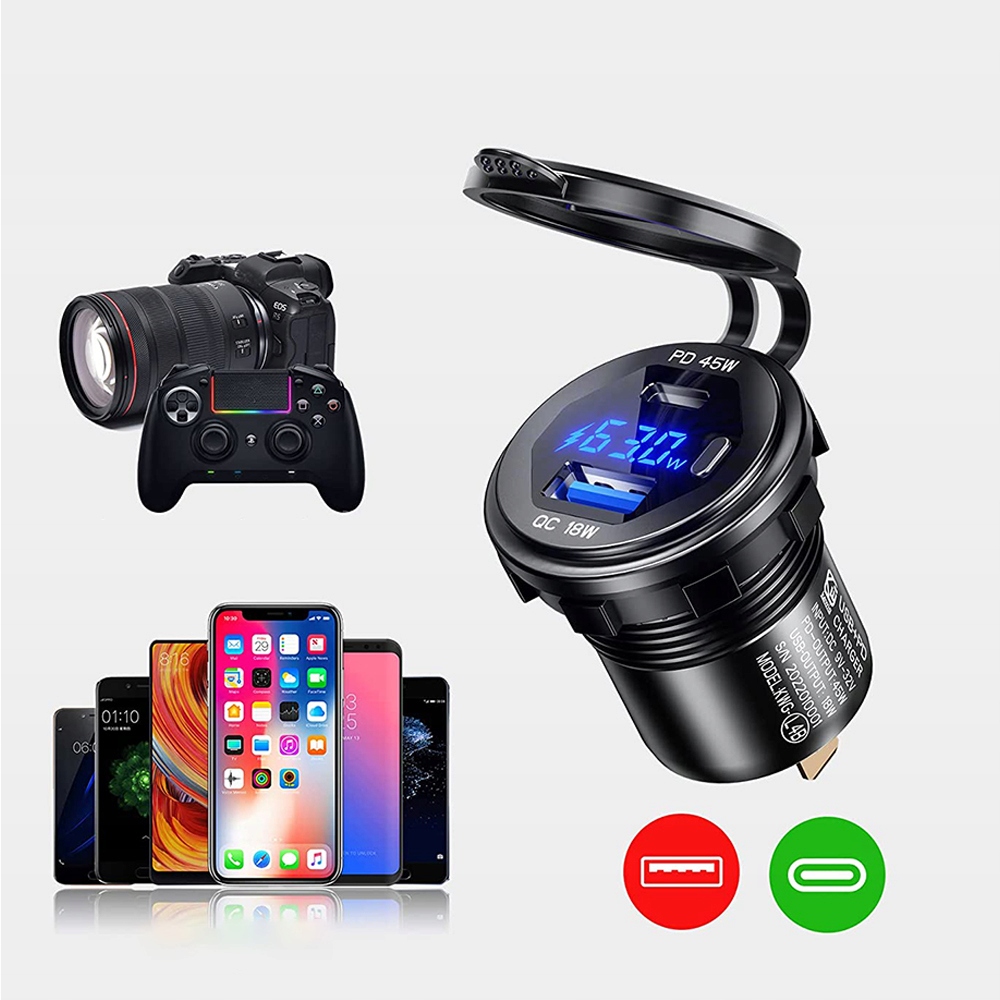 ⚡️ - С переключателем для управления 2 портами зарядки и светодиодным вольтметром, энергосберегающим и практичным.
