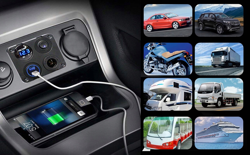Подходит для автомобилей, лодок, лодок, грузовиков, квадроциклов, UTV, автодомов, кемперы, аккумуляторные ящики и другие устройства с напряжением 12–24 В.